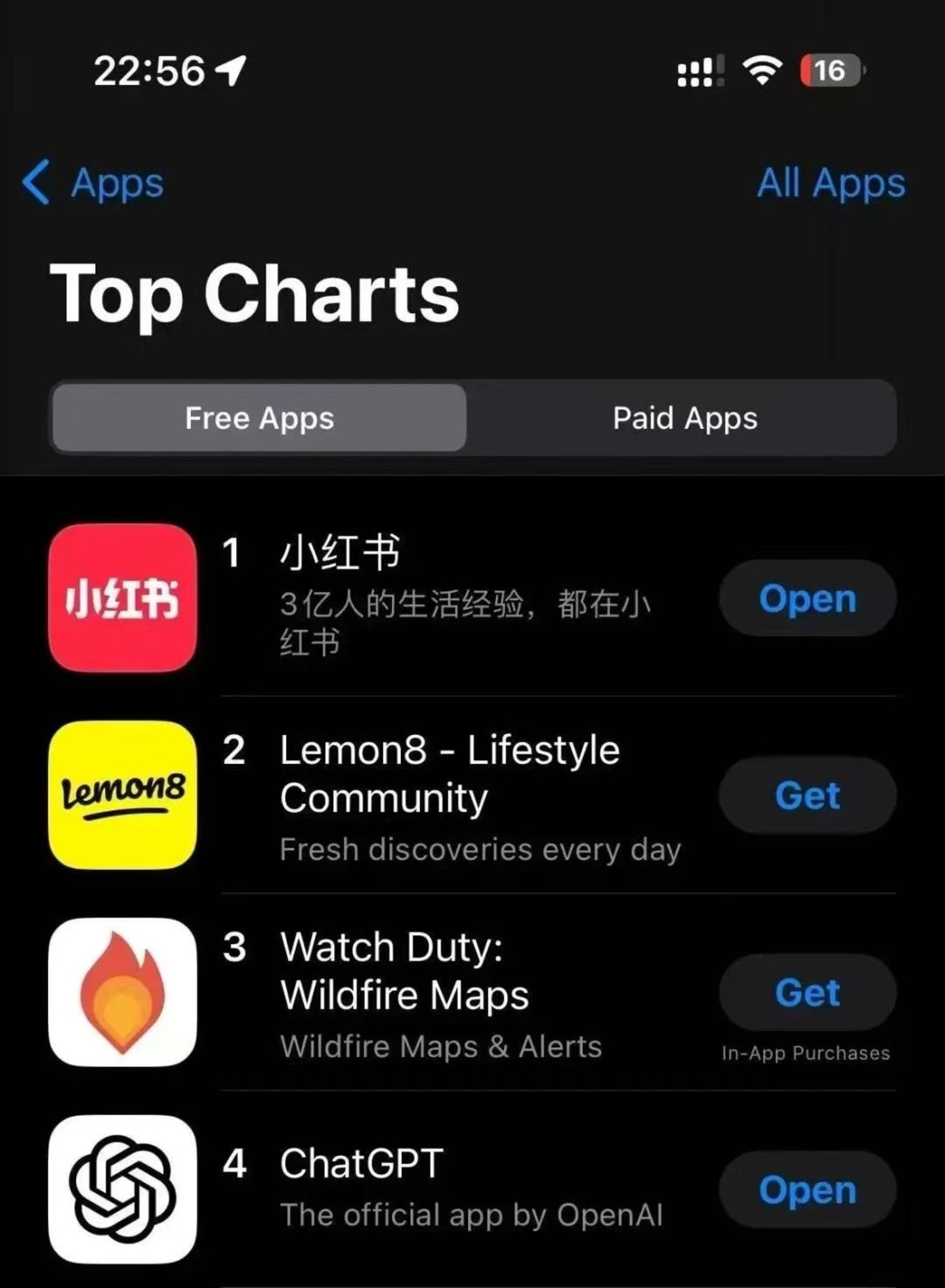 这两天,美国App Store的榜单前十中,出现了一个全是汉字的应用——小红书。1月14日,小红书从昨日的第二名又升了一位,目前在美区App Store排名第一,紧随其后的是字节在海外的照片分享应用Lemon8和OpenAI的ChatGPT。