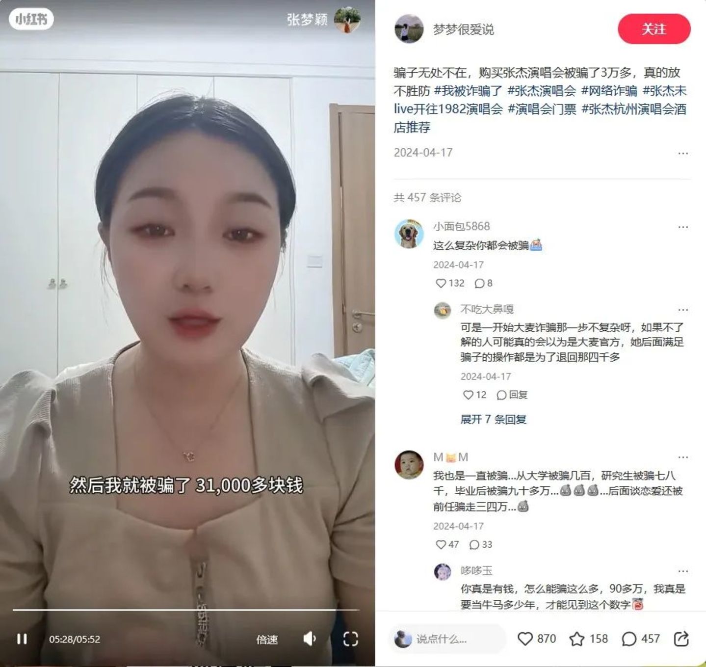 简单来说,在任何涉及资金支付或敏感信息的环节,粉丝都应当主动核实信息来源,确认其是否为官方渠道。同时,不要因为害怕错过机会,轻易相信陌生人提供的购票方式。去年4月,就有粉丝因求购张杰演唱会门票被类似操作3小时内诈骗3万元。这些骗局的受害者往往因为一时疏忽,最终造成损失。