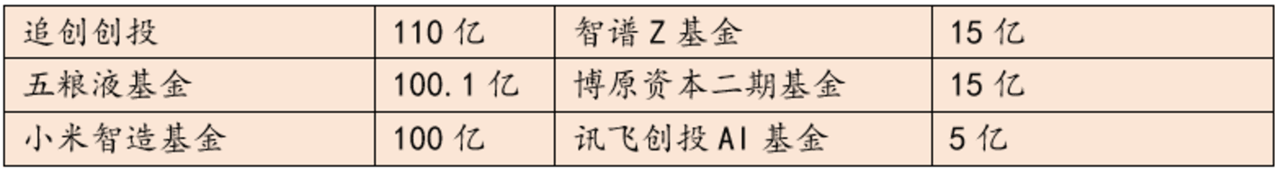 最后,随着大模型的火热,新晋AI独角兽们也在加速设立CVC及成立新基金。典型如智谱AI生态基金“Z基金”完成首关,规模15亿;追觅科技发起设立机器人产业创投基金,一支成长期战略基金和一支中早期孵化基金,总目标规模达110亿人民币。科大讯飞旗下讯飞创投AI基金总规模5亿元,背后更是出现了合肥、重庆、天津等地国资LP身影。