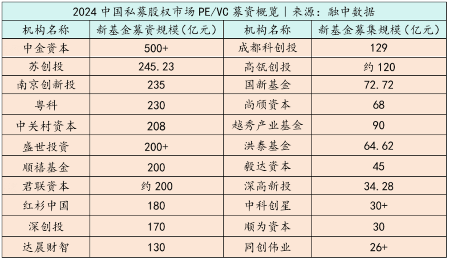 2024年,融中统计了部分明星机构的募资情况,我们发现,中国私募股权市场出现了很多有意思的新的结构性变化。比如“消失的市场母基金”“985高校基金崛起”“AI独角兽CVC来势汹汹”“AIC加速落地”“国资加持并购基金”等等,几乎成为了中国一级市场的最新关键词。