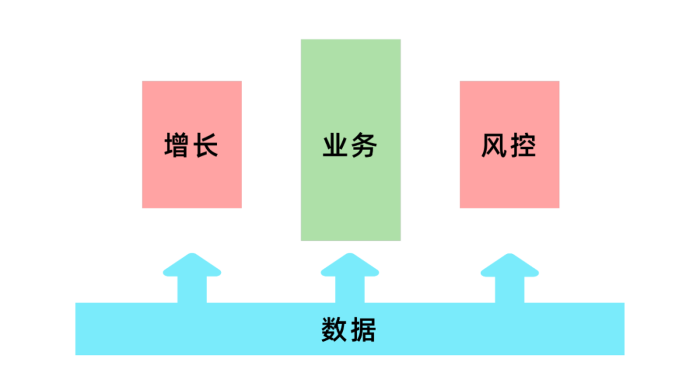 对于一款产品,从风控角度来抽象,其基本业务框架的模型可以总结为“业务”、辅助业务的“增长”、保障业务的“风控”和支撑以上三点的“数据”。