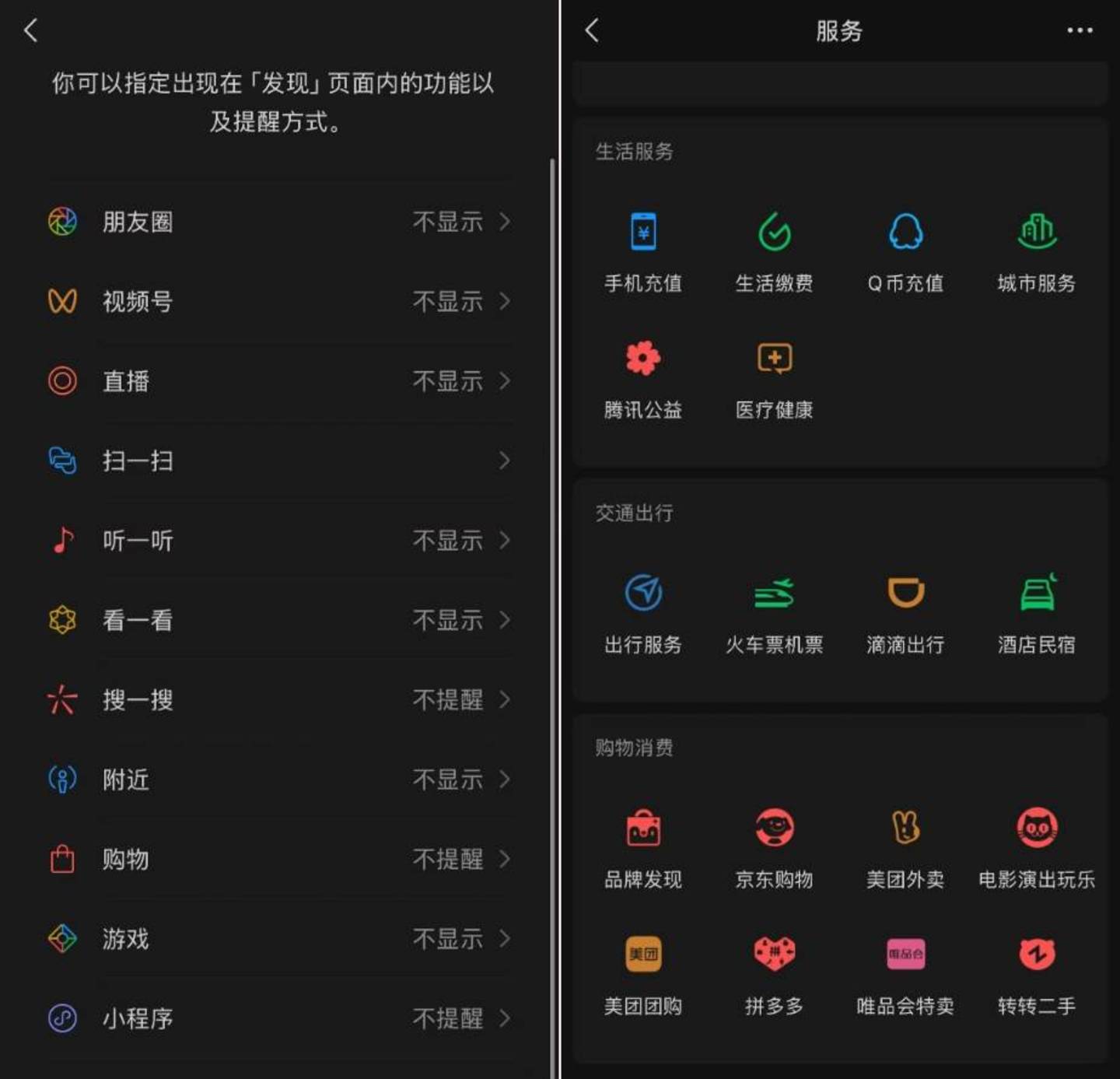此外,整个微信依然充斥着混乱的入口和第三方平台,包括发现页的“购物”入口(京东);服务页的京东、唯品会、美团外卖等入口;小程序中的品牌直营店铺(独立于微信小店),它们各自为营,缺乏统一的交易体验。