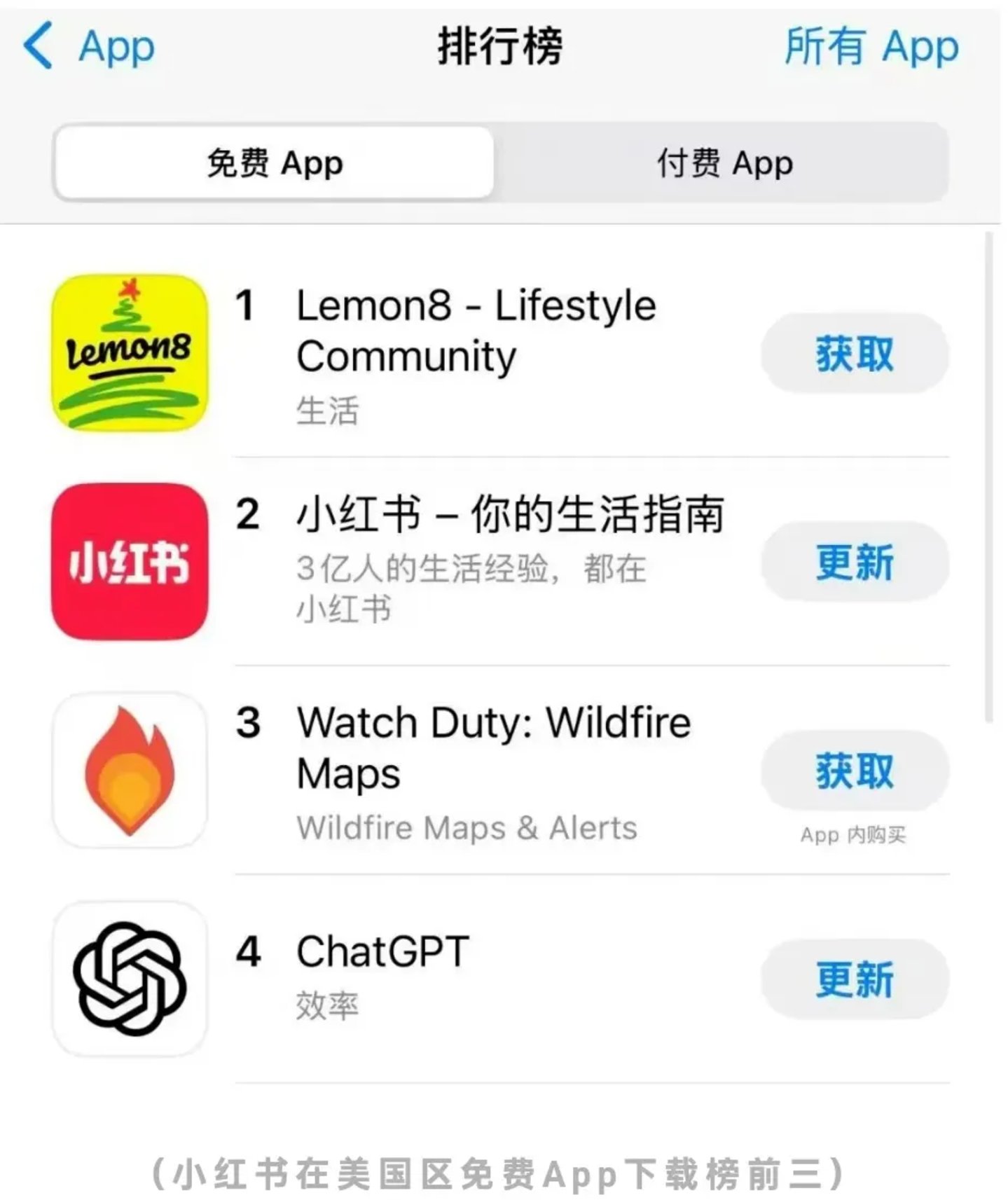就在最后的日子越来越近之时,一些美国网友开始向外寻求解决途径,小红书和抖音就被他们选做出海的先行目标。他们涌入小红书和抖音开设账号,并且自称为“TikTok Refugee”(抖音难民)。有消息表示,他们短期内的行为在小红书带来了四千万的流量和超10万份帖子。