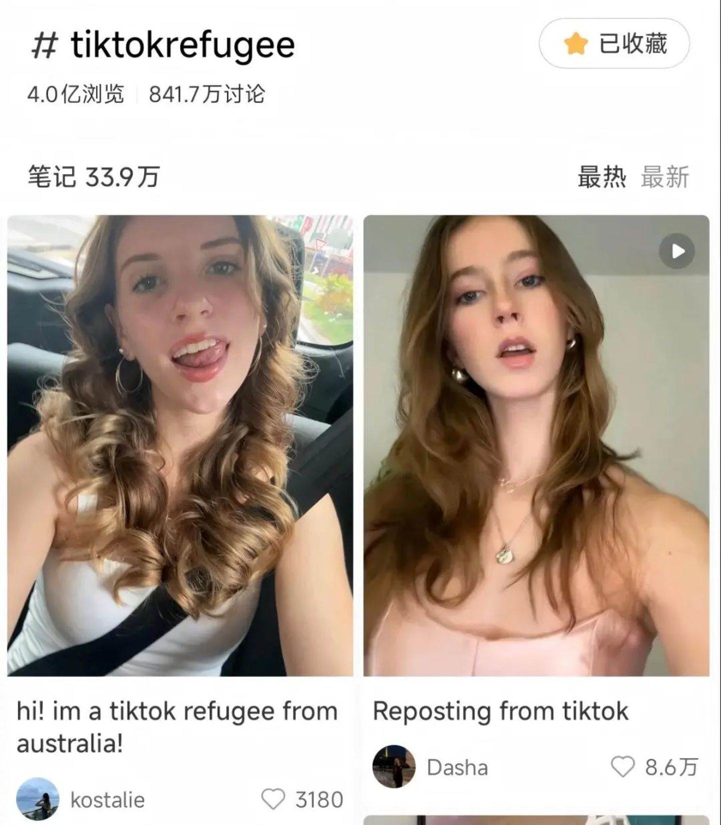 在热门标签“#tiktokrefugee”下,DataEye研究院观察到其最新及最热内容,大部分均为海外用户进行自我介绍,小部分为国内用户讨论“TikTok难民涌入小红书”相关话题,与游戏相关讨论不多。