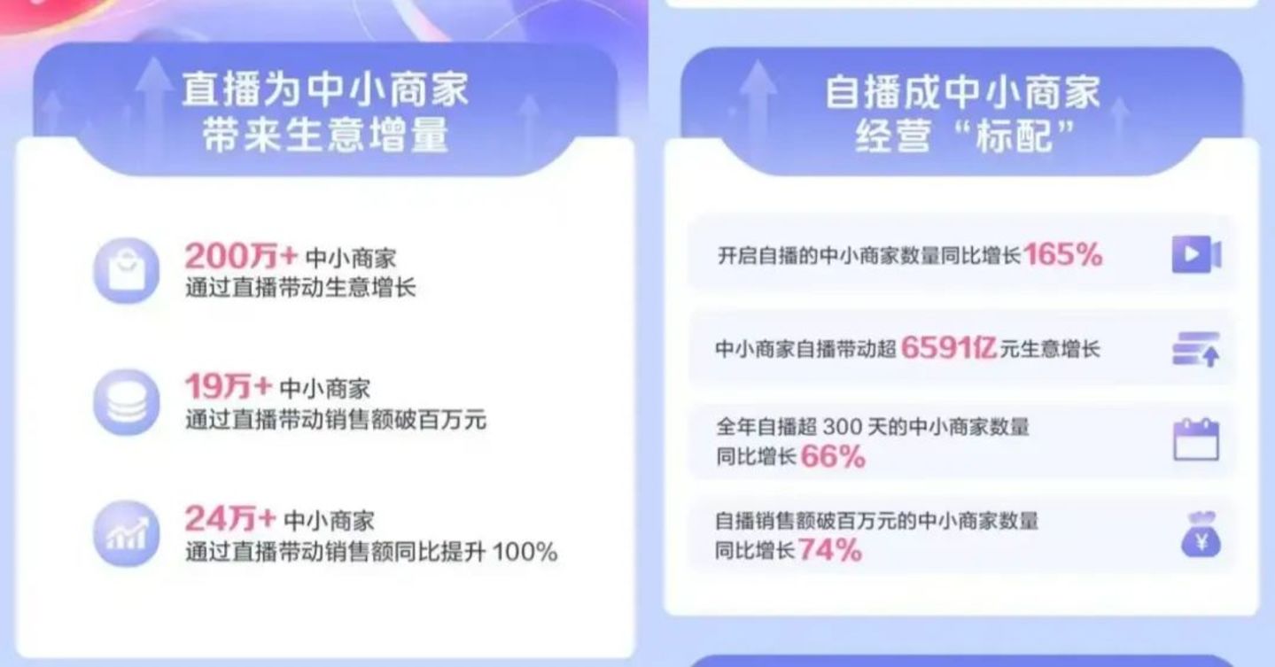 据《2024抖音电商中小商家直播发展报告》,2024年有超过200万个中小商家通过直播来获得新的生意,其中销售额超过100万元的中小商家有19万个。从2024年开始,抖音平台开启自播的商家数量同步增长了165%,目前自播销售额已经达到了6591亿元。