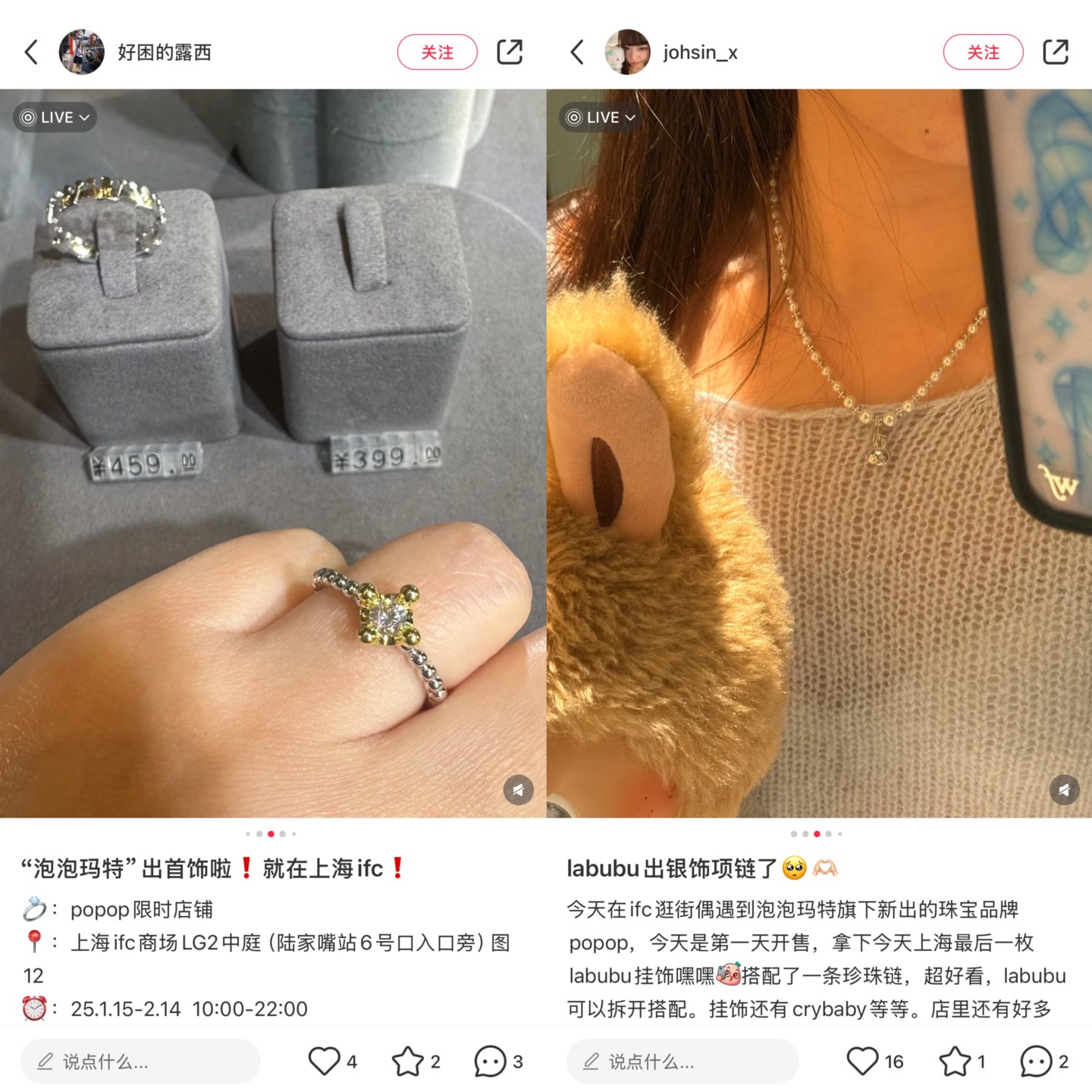 来源:小红书截图 图片来自小红书博主“好困的露西”和“johsin_x”