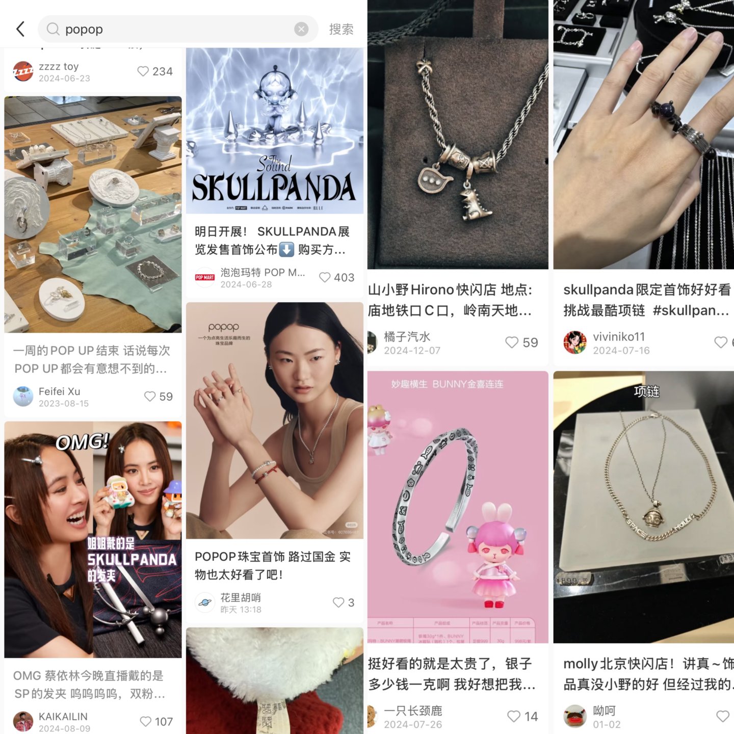可见,泡泡玛特的IP影响力已经较为成功地从盲盒走到了饰品层。而如今这些银饰以品牌名POPOP出现,则更像是从内测成功走向了发布阶段。
