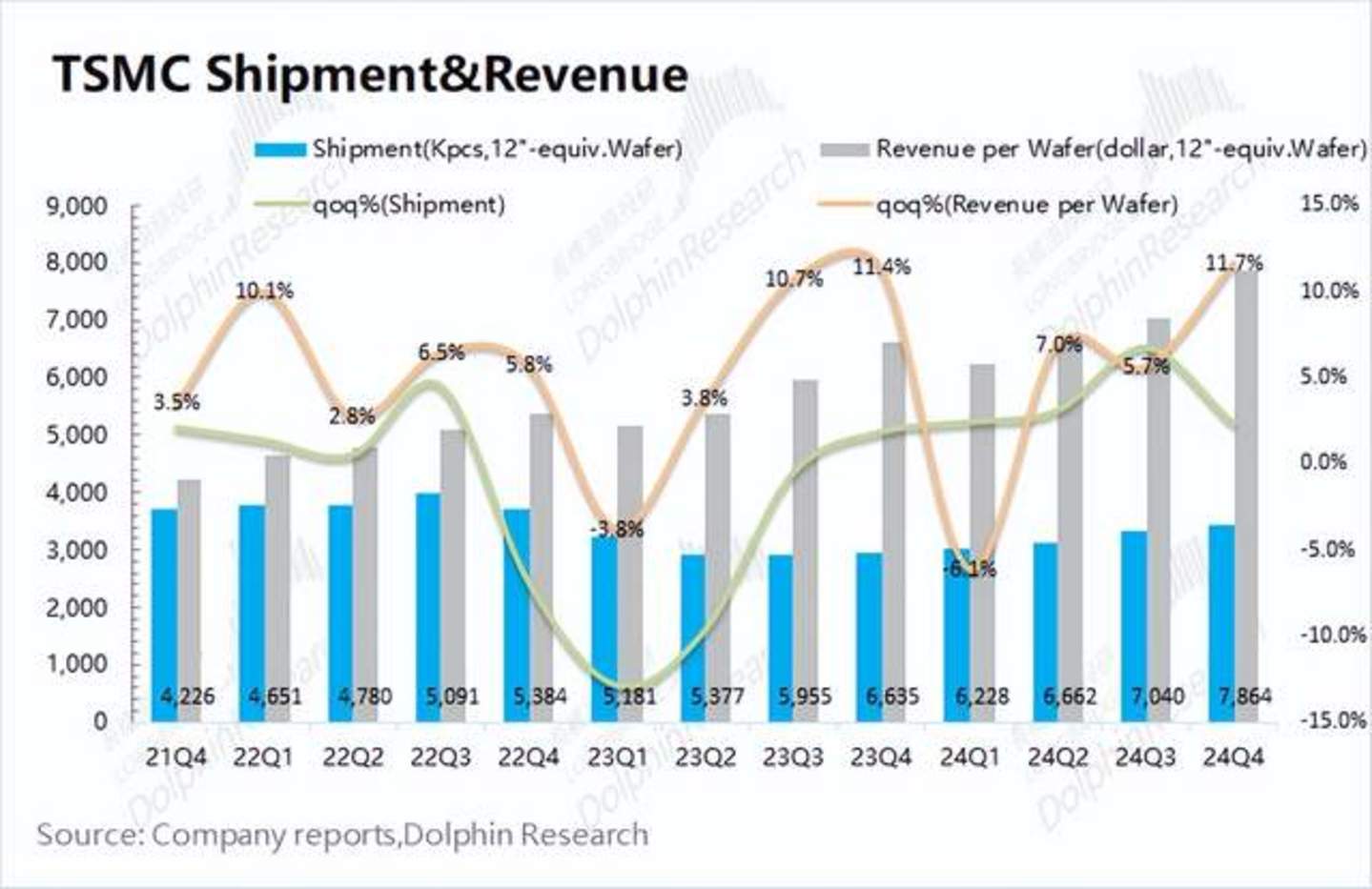 海豚君从量和价的维度,来观察台积电四季度收入增长的主要推动力: