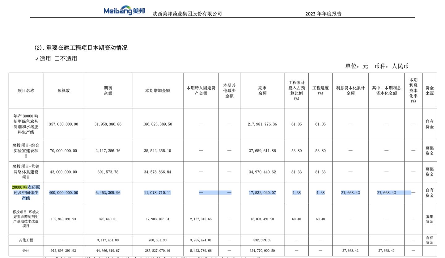 即便如此也未能挡住美邦股份原药转型的决心——虽然撤回可转债发行,其坚持启动了投资超过13亿的20000吨原药生产项目,资金来源为自筹。