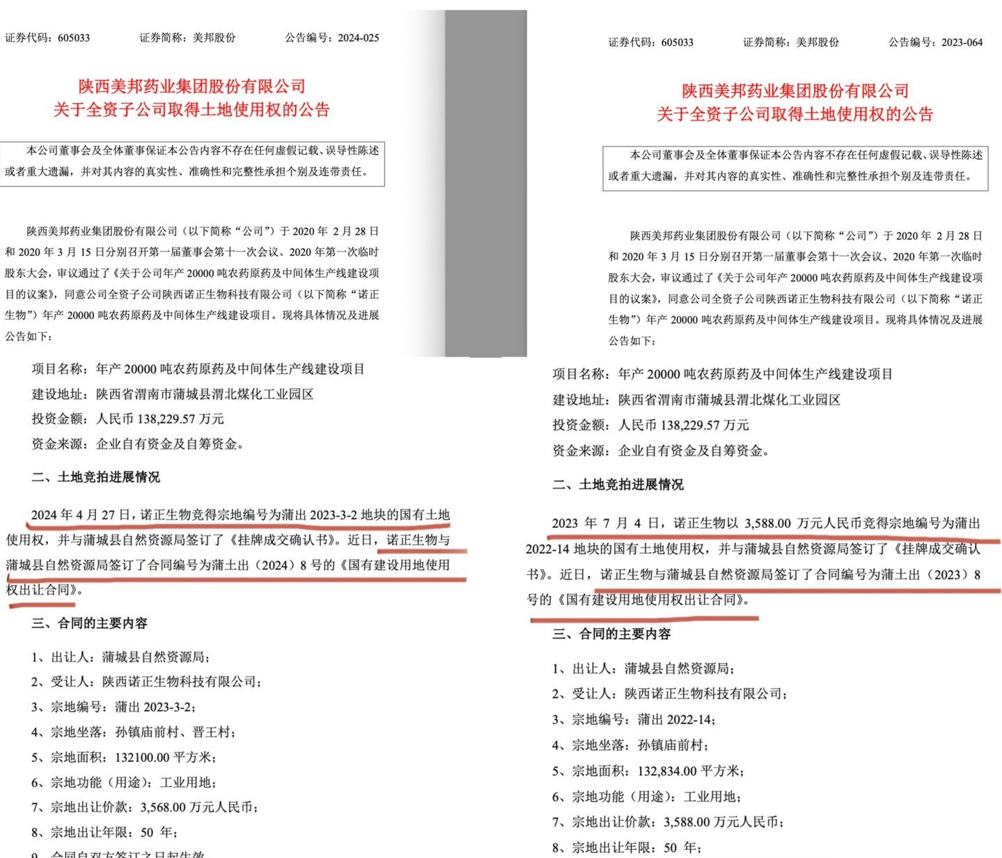 不仅如此,原药项目建设的土地还分别在2023年和2024年拍下两次,其坚定程度可见一斑。