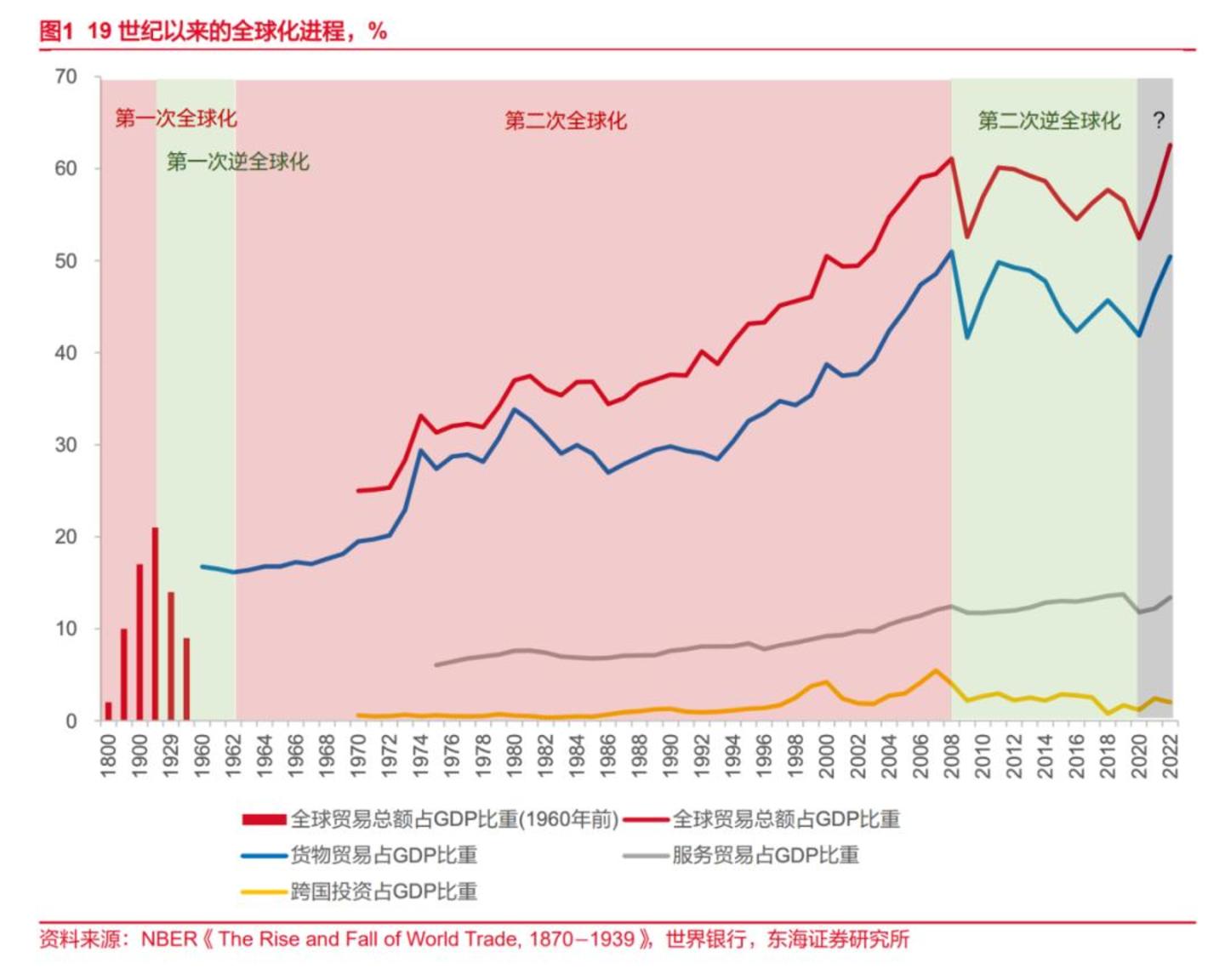 东海证券在一份研报中总结,从有记载的人类文明发展至今,总共经历了两次「全球化」与两次「逆全球化」。