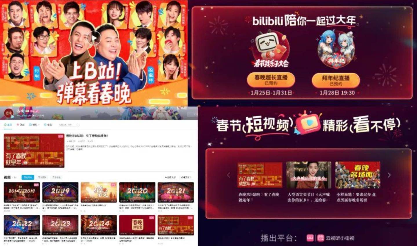 新军方面,B站15年来首战春晚最惹人注目,1月9日「上B站,和3亿年轻人一起看春晚」的首页slogan携同「上B站!弹幕看春晚」愿望成真的消息在舆论场荡起涟漪;再是13日小红布宣布成为「2025年总台春晚独家笔记分享平台」,这是继去年首度牵手后小红书二征春晚沙场。