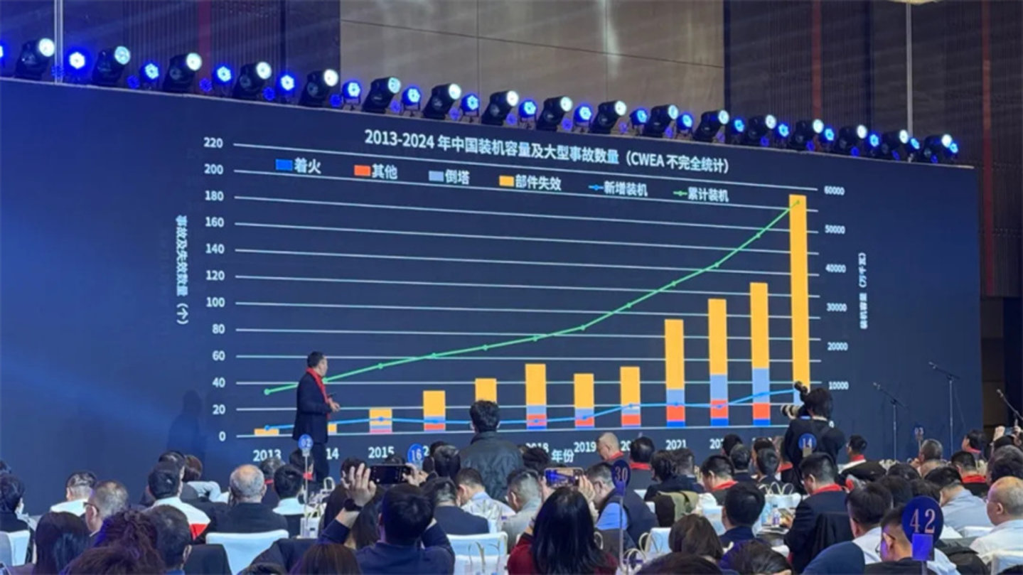 娄益民的担心不无道理,风电行业事故逐年上升便是证明。根据CWEA数据,2021-2023年风电大型事故数量为95起、114起和130起,2024年猛增至210起,绝大部分原因是部件失效,其次是倒塔。