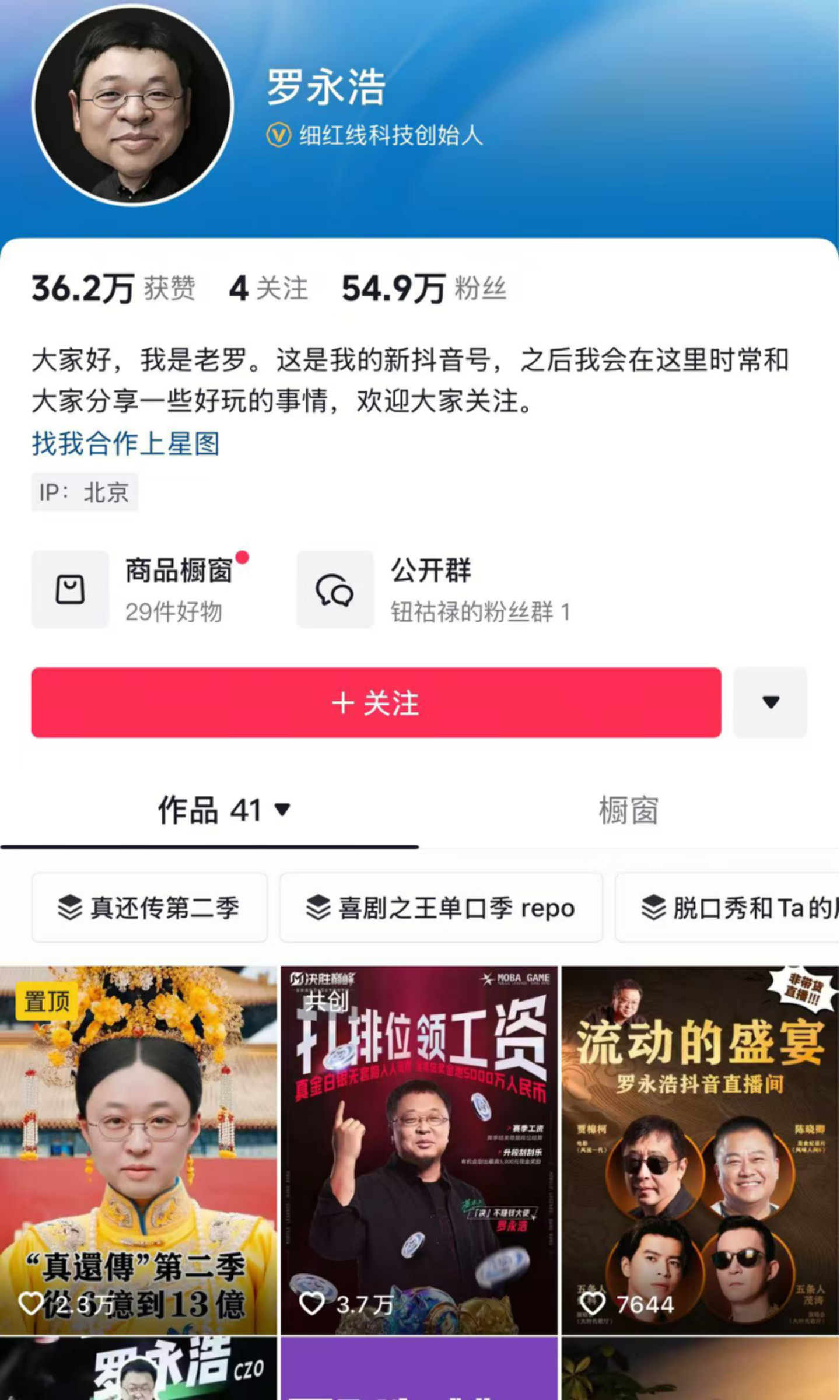 2020年4月1日晚,罗永浩开启首场直播带货,当晚涨粉215万,累计4800万人次涌进直播间,带货交易额达到1.1亿元。