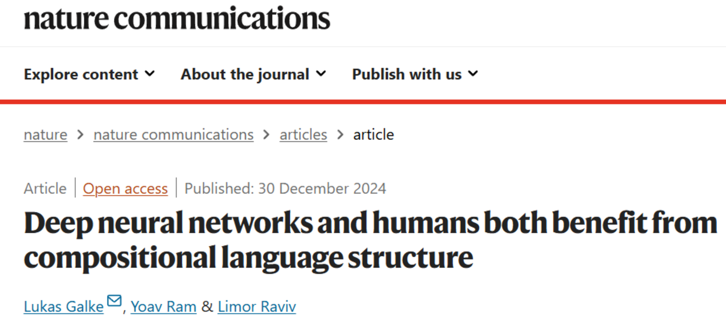 图1. 本文来源:Galke, L., Ram, Y. & Raviv, L. Deep neural networks and humans both benefit from compositional language structure. Nat Commun 15, 10816 (2024). https://doi.org/10.1038/s41467-024-55158-1