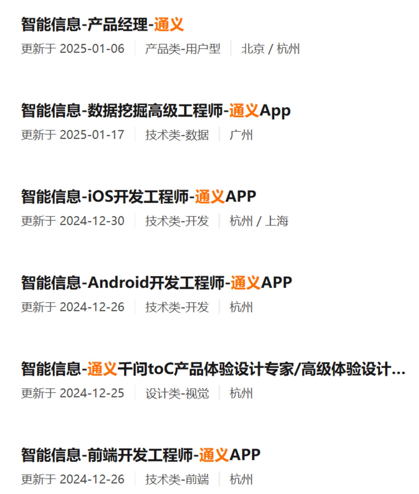 根据目前通义在智能信息事业板块的岗位信息,总结而言有两个特征,一是职能分工没有具体方向,二是技术本位思维依然存在。