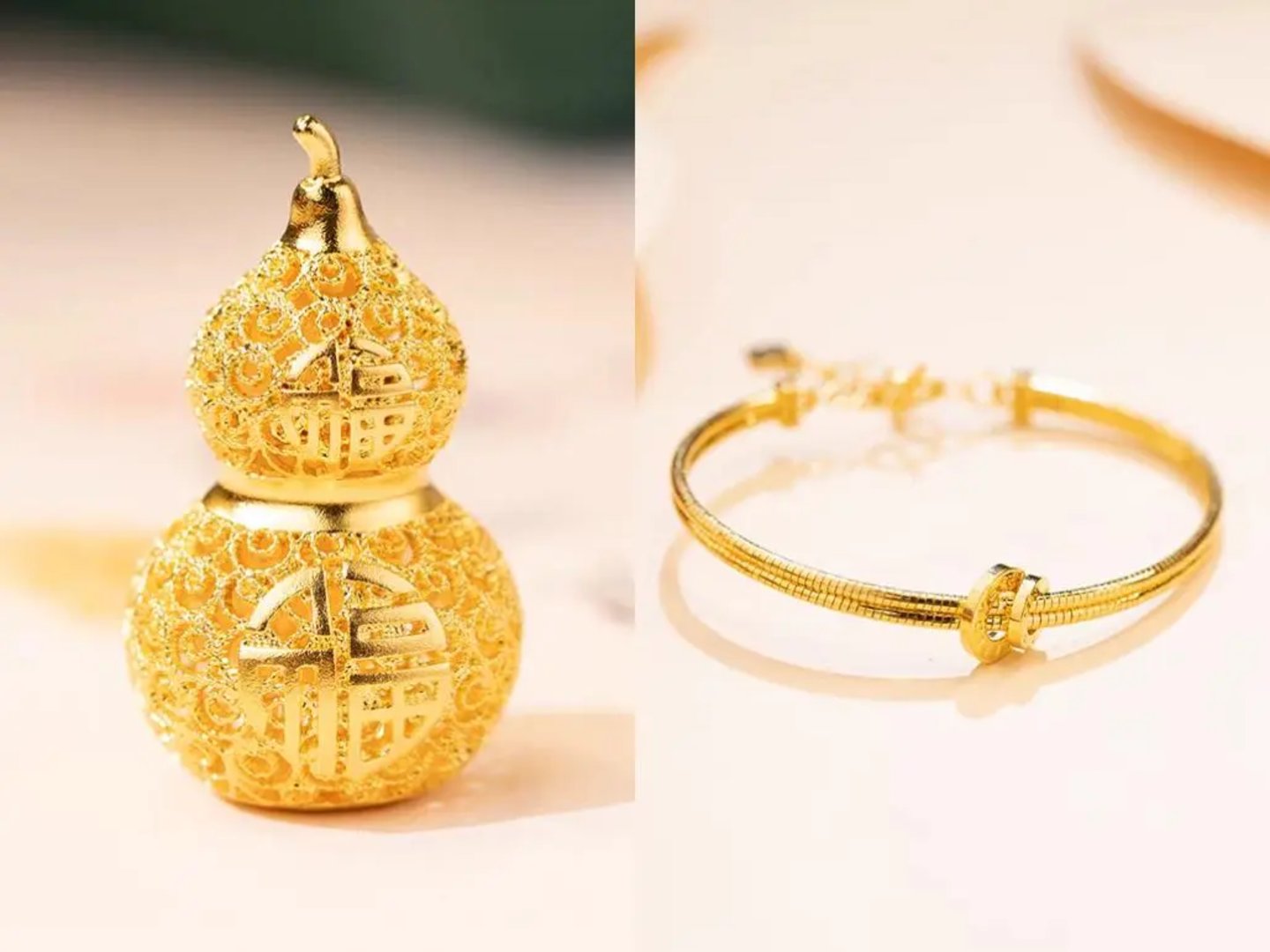 今年黄金结合钻石、珠宝的产品走红,东宇的祝富礼珠宝企业店也同样做了镶钻镶宝石的产品,还结合当下潮流做了金包银的配件,“又是实心的,价格也不高,还保值,能让消费者自己去搭配穿手串”。