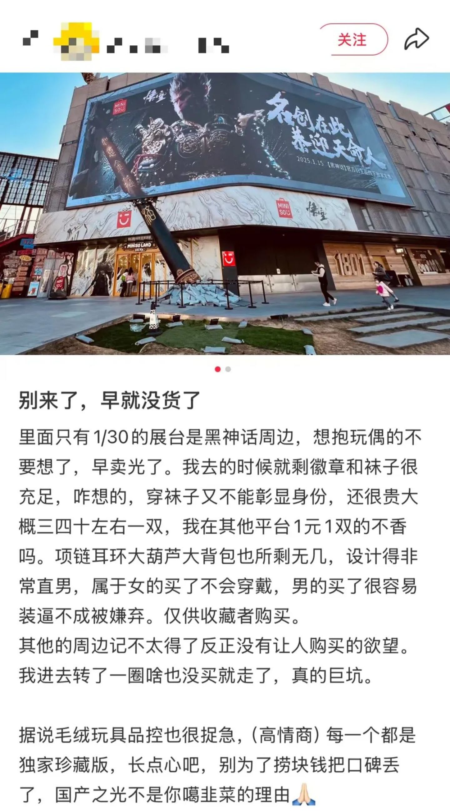 从外观和设计来看,本次联名的一些品类并未满足玩家的期待,某玩家对剁椒Spicy表示,“可以花350买包,但包这种周边,要么足够实用,要么足够酷炫。这个两头都不沾啊。”显然,对于存在大量男性消费人群,想要外拓生活属性的《黑神话·悟空》,产品设计上也存在较大缺陷。