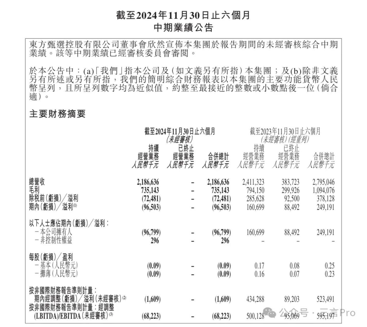 1月21日,东方甄选发布截至2024年11月30日的2025上半财年财报。