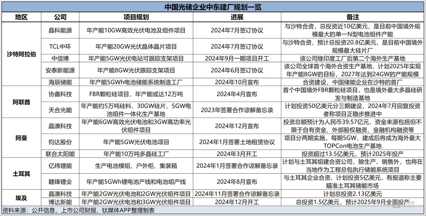 从近两个月密集公布的建厂计划和动工喜讯来看,中国光储很有可能在2025至2026年迎来中东产能落地大年,并由此激发新一轮的出海热潮。