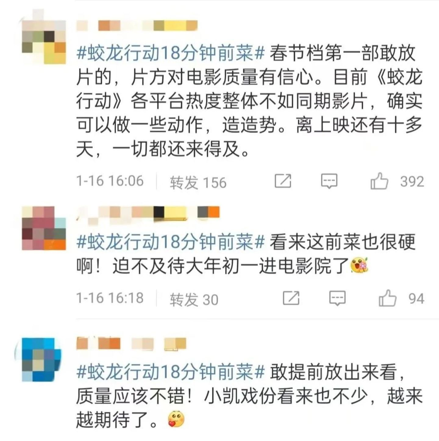 相较而言,《蛟龙行动》在一众影片中,热度稍显不足。之前因为一个短视频“你知道潜艇有多保密吗?”引发网友群嘲,纷纷表示“为了保密,我不看电影了。”好在后面释出18分钟的“前菜”,希望通过口碑来拉动观众的入场,这种从未有过的操作,看似是一种策略的冒险,同样是一种内容的自信。