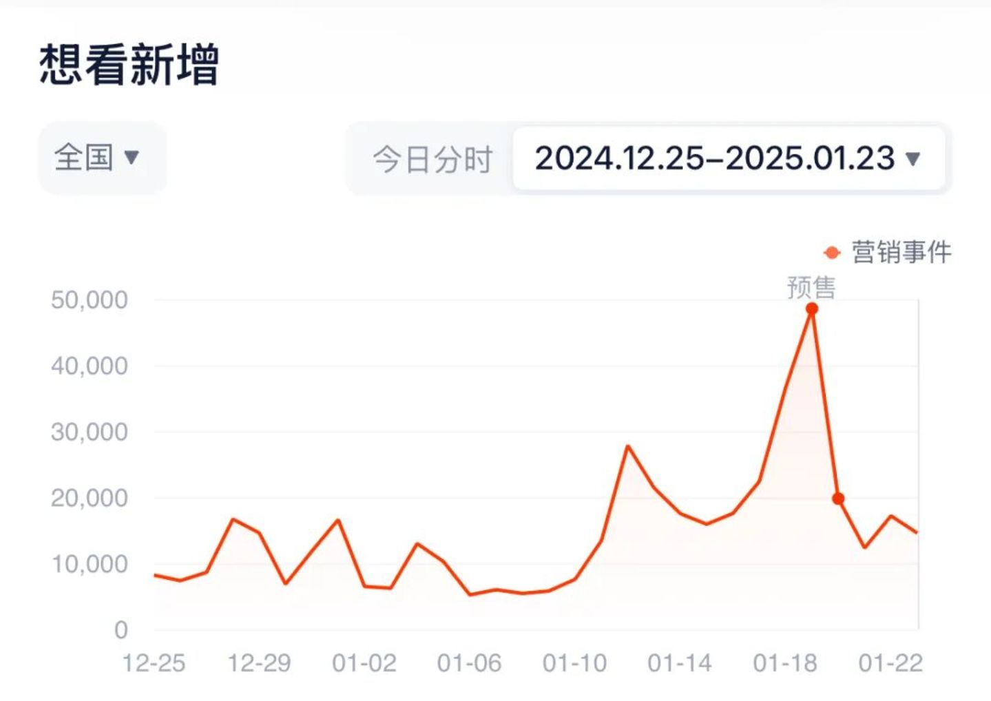 不只预售数据创新高,想看数据的增速也十分喜人。据灯塔,2025年春节档影片映前90天至映前19天新增想看超218万,创历史同期新增想看新高,彰显着各片映前营销策略之成功。
