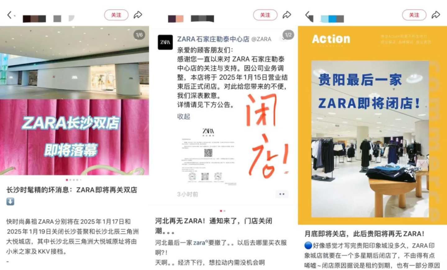 2025年伊始,ZARA将在一个月内再关掉7家门店的消息不胫而走。据ZARA消息,有四家门店陆续在1月20日前结束运营,其中包括ZARA深圳龙岗万科广场店、长沙荟聚商场店、北辰三角洲大悦城店以及贵阳印象城店。除此以外,石家庄勒泰中心门店、无锡荟聚商场和上海五角场万达广场门店,也将陆续在一月内关闭。一时间,有关ZARA是否会退出中国市场的忧虑又甚嚣尘上。