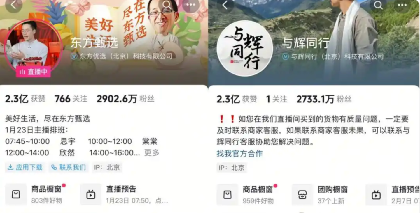 还有一套,东方甄选在业绩报告中提及“与辉同行”多达18次。还特意强调,若剔除出售与辉同行的财务影响,东方甄选报告期内净赚3270万元。