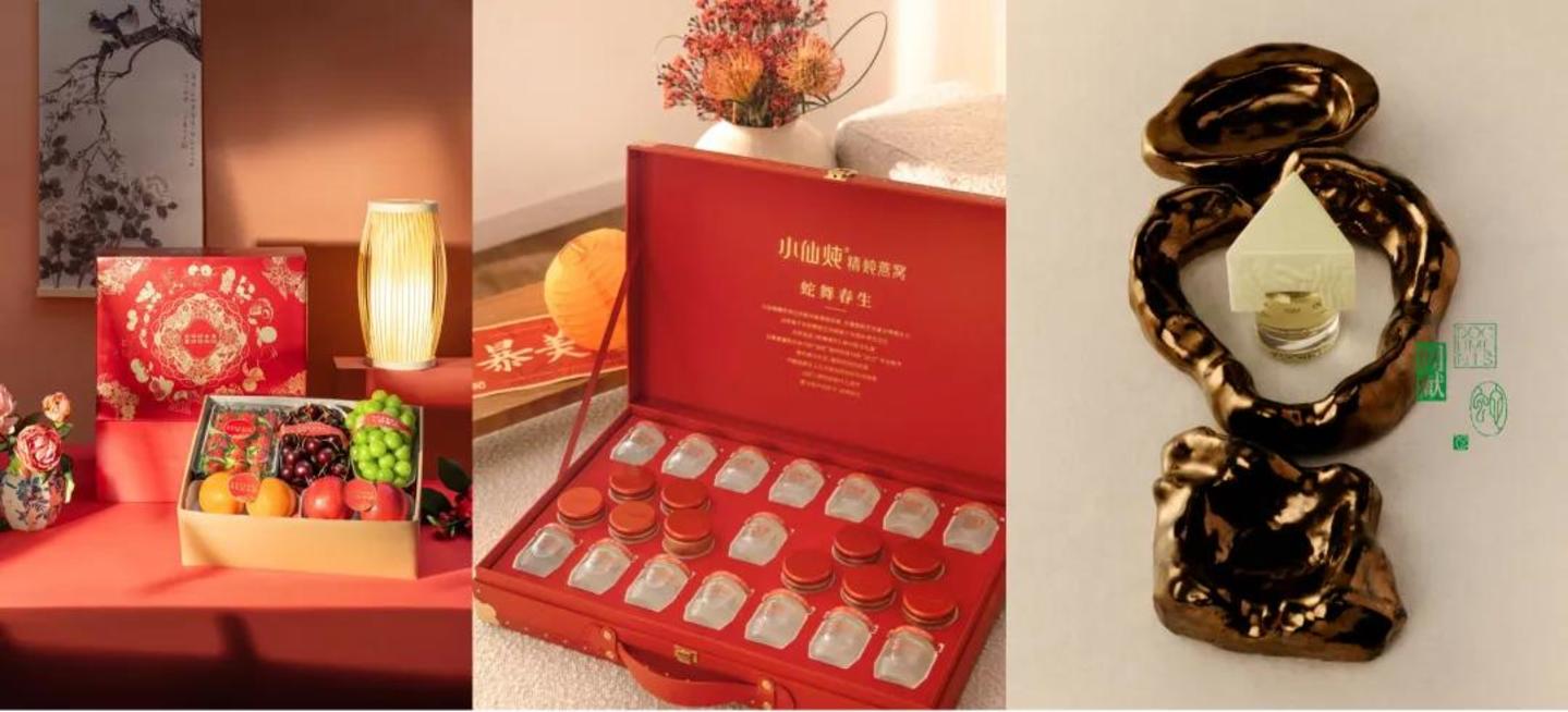 今年生肖依然是大热门,特别是海外奢侈品牌几乎都以蛇为设计灵感推出新春系列。但特别的是,很多品牌会选择与国内设计师、艺术家、非物质文化遗产传承人联名合作,避免了同质化,也提升了产品的文化内涵。如百果园携手非遗苏绣传承人推出了春节联名系列礼盒,小仙炖则携手非遗剪纸艺术家设计了“蛇舞春生”新年礼盒。闻献携手中国调香师 Yili Li,首发中国生肖系列全新浓香精「蛇 SNAKE」。