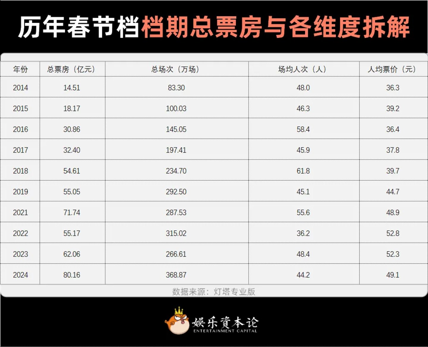 在此前的档期预测中,小娱曾多次提到,场均人次是电影市场的最大不确定因素。而2024年的场均人次绝对不容乐观。