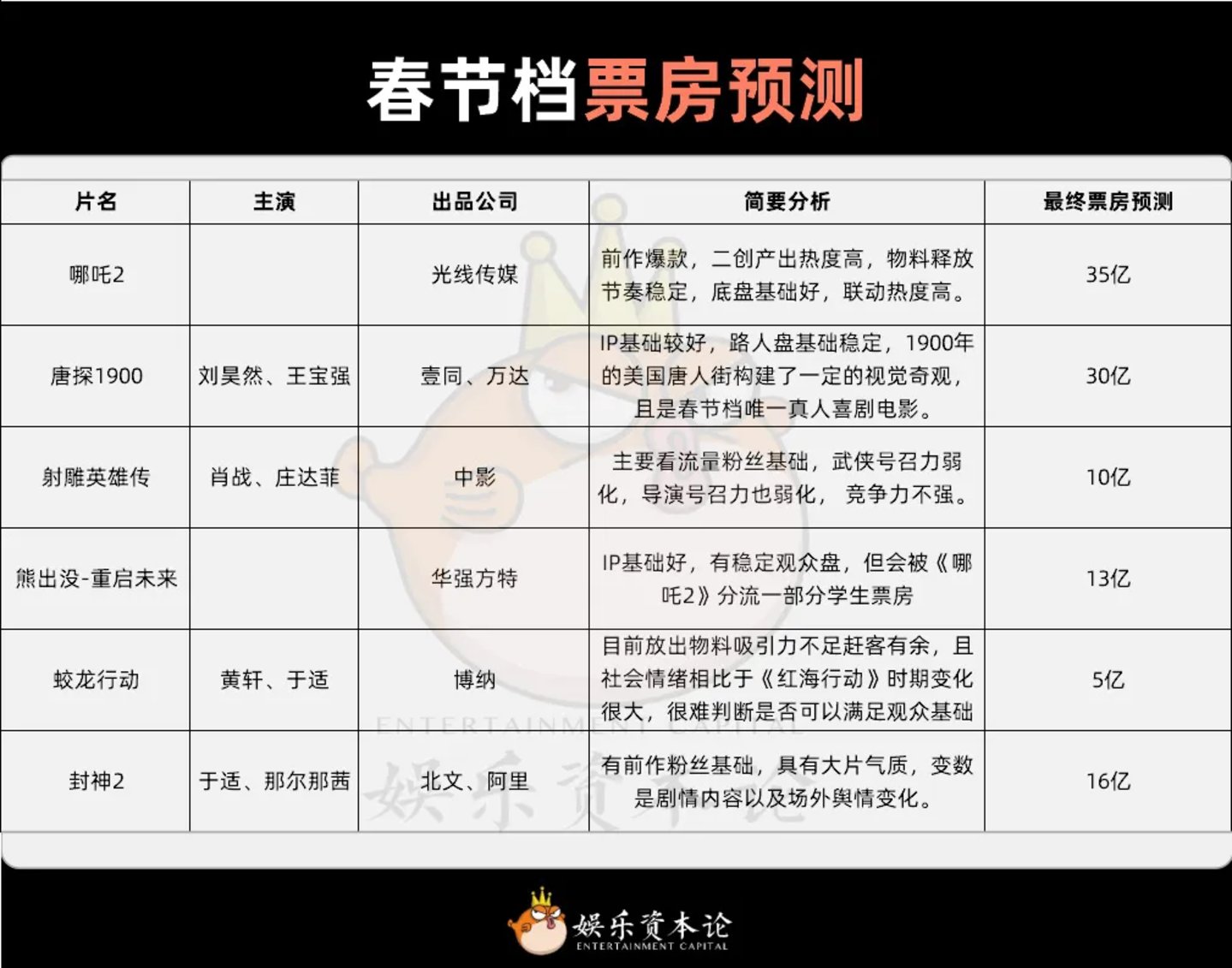 春节档对每年电影市场的重要性不言而喻。2024年的国庆档,小娱说行业已经来到了“危急存亡之秋”;那么2025年的春节档,小娱认为将是左右电影产业发展的最后一役。2025年的春节档汇聚了眼下人气最高的几部影片,这六部影片的成败将直接影响后续影片的开发策略以及前文多次提到的成本预算体系。