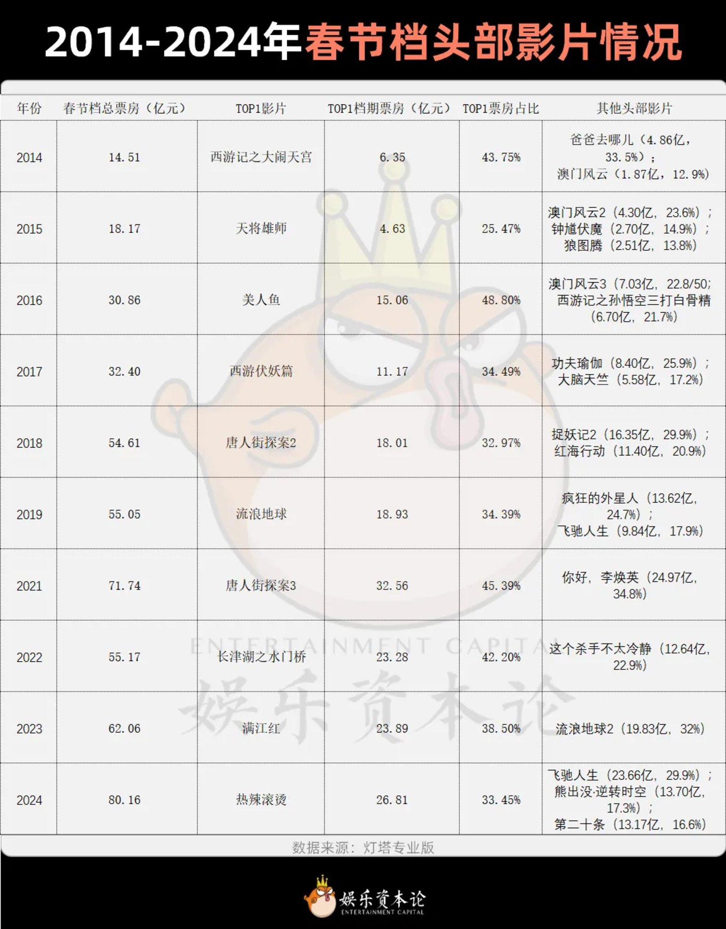 图8 2014-2024年春节档头部影片情况