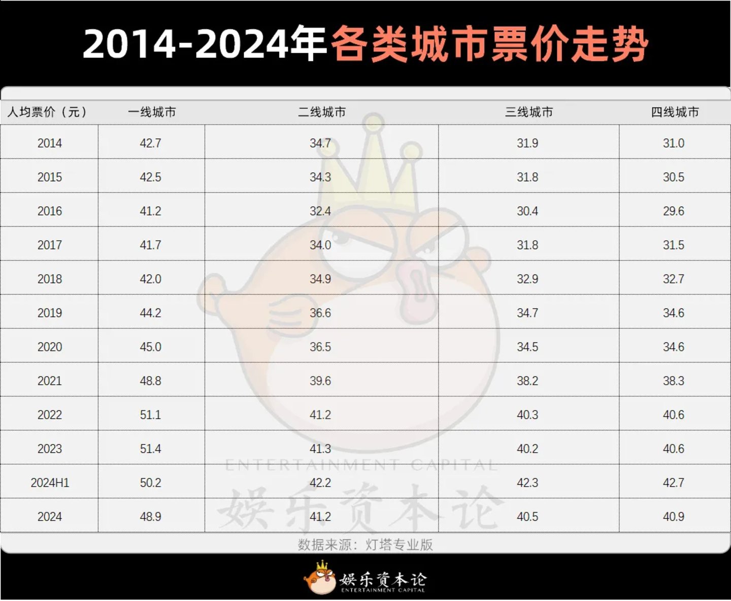 图4 2014-2024年各类城市票价走势