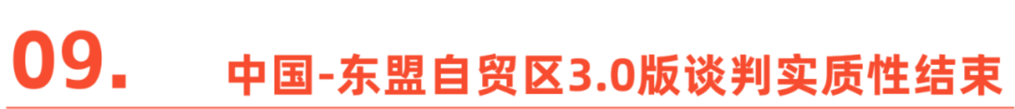 2024年10月11日,中国与东盟十国已宣布实质性结束中国-东盟自贸区3.0版谈判。