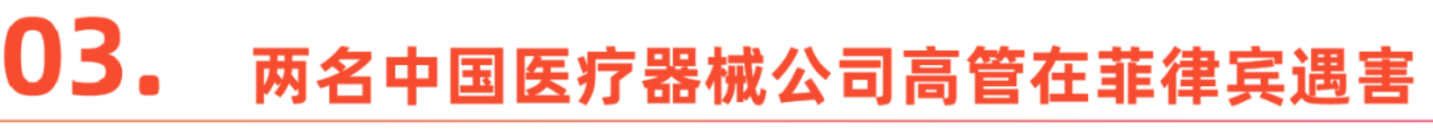 2024年6月,两名中国医疗器械公司高管赴菲律宾工作时,遭遇绑架并被撕票。据了解,遇害的两人其中一名为港股上市公司的国际营销总监,另一名为心血管医疗器械的经销商。而就在此事发生的一个月前,菲律宾还爆发了另一起绑架案,也与中国人有关。事后,四名菲律宾警察被逮捕。