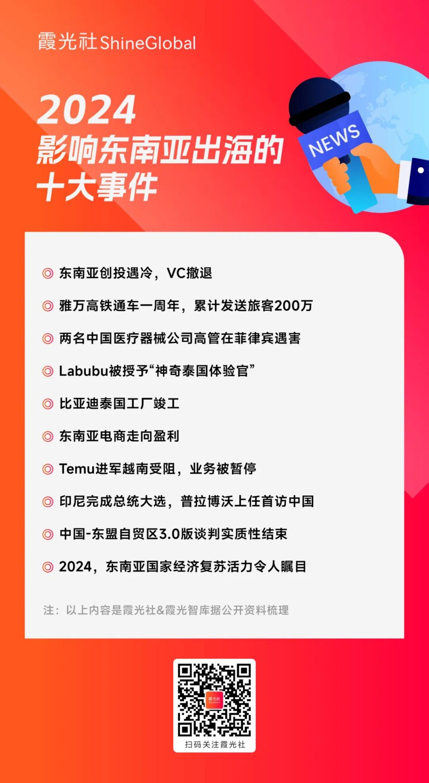 以下,霞光社&霞光智库盘点了2024年出海东南亚的十大事件。