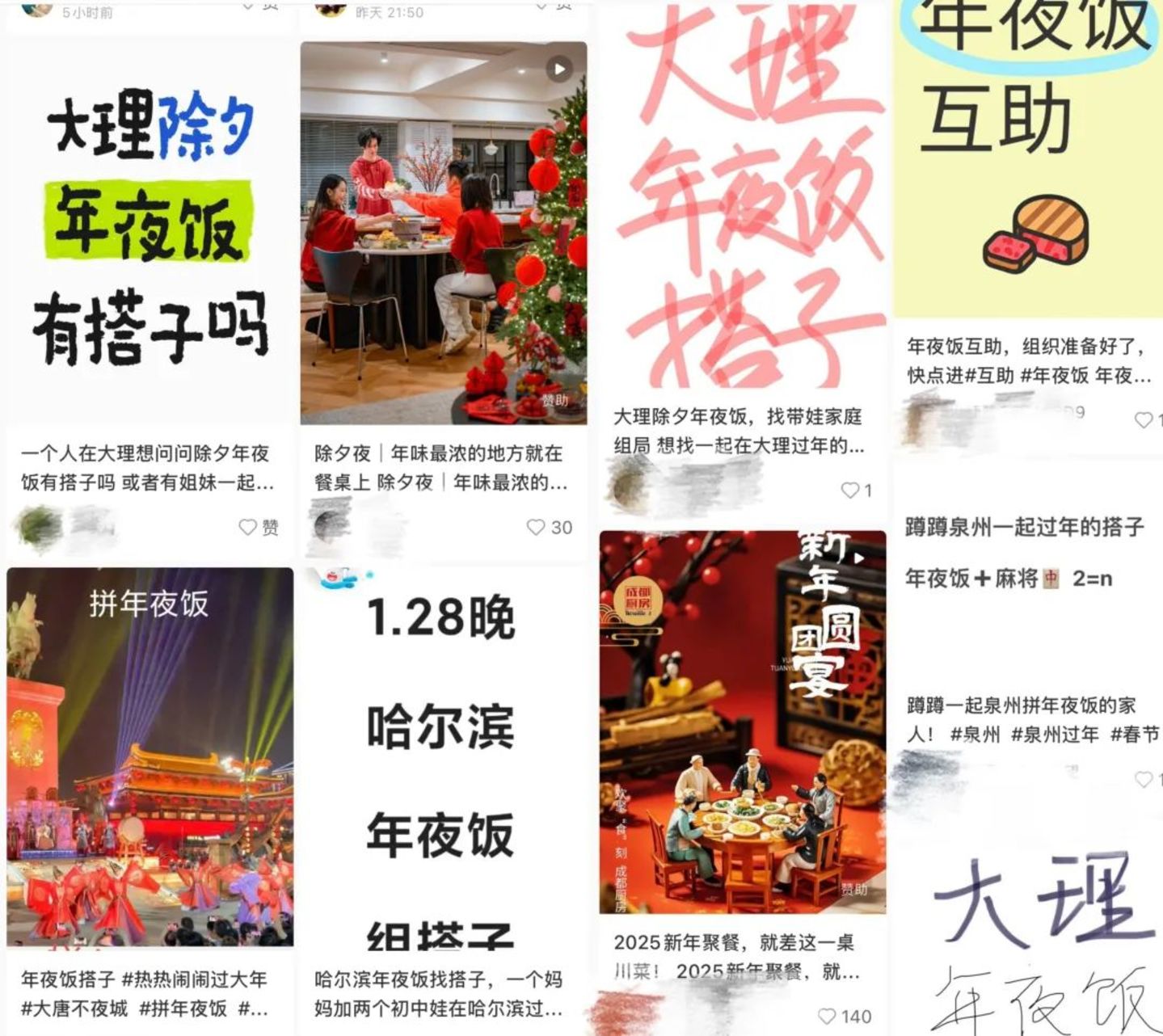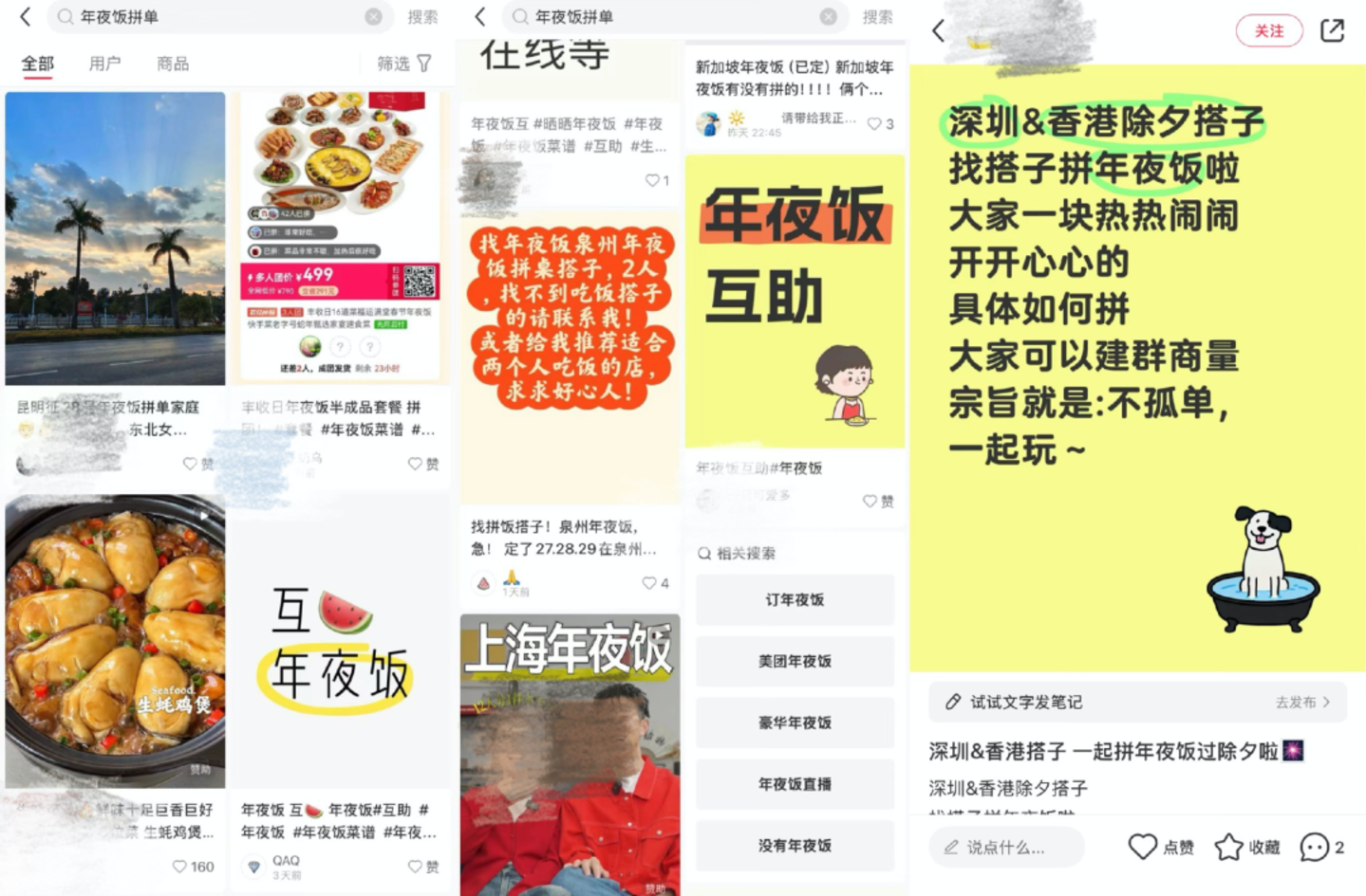图:社交平台上关于“年夜饭拼单”的内容