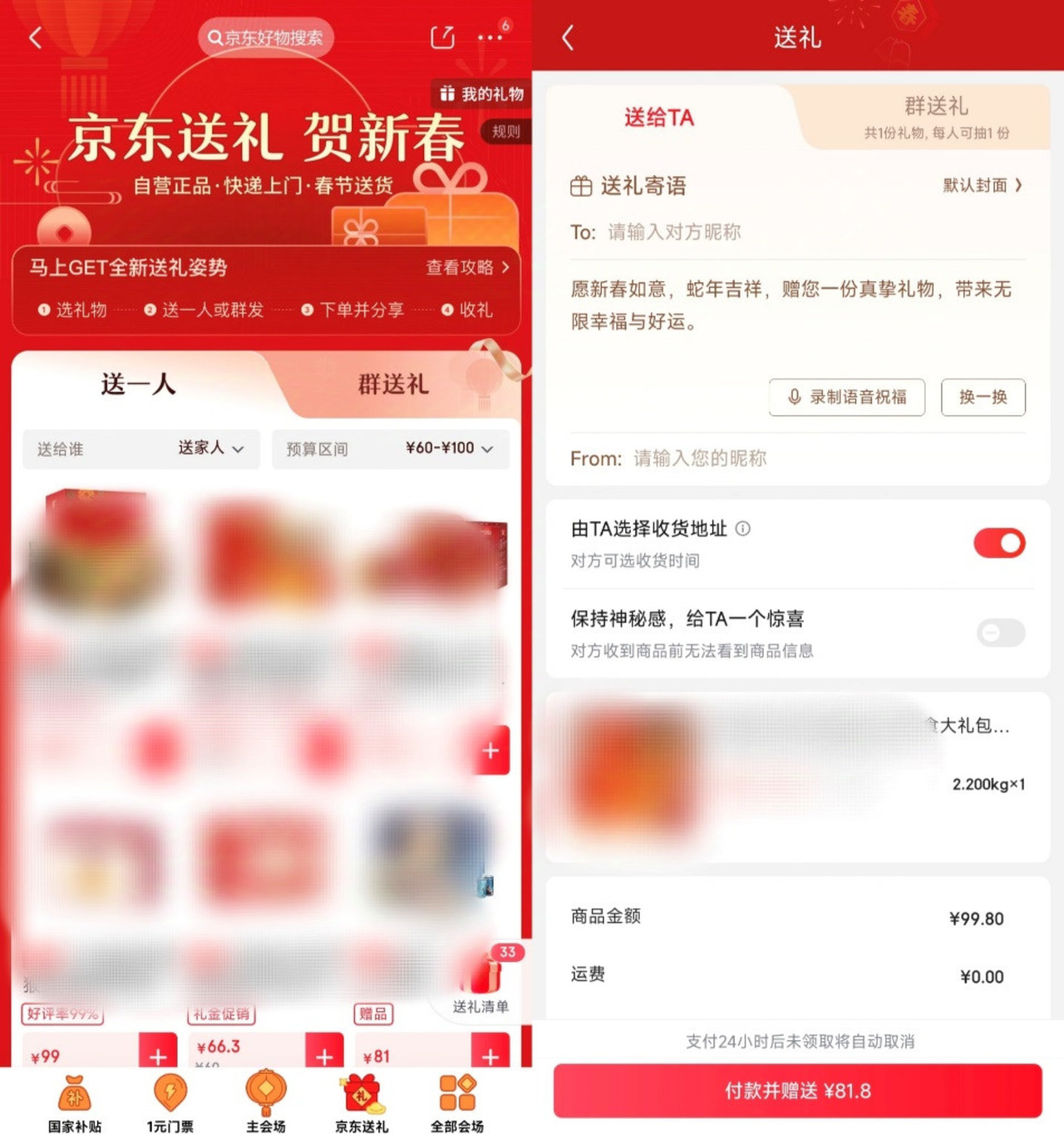 而继微信和淘宝之后,1月17日,京东也上线了“送礼”功能。玩法和淘宝类似,但目前仅适用于“京东送礼”专区里的商品,并不是所有商品都支持。但值得注意的是,京东同样推出了“群送礼”玩法,即用户可选择一次购买多件礼物并打包发到微信群中。