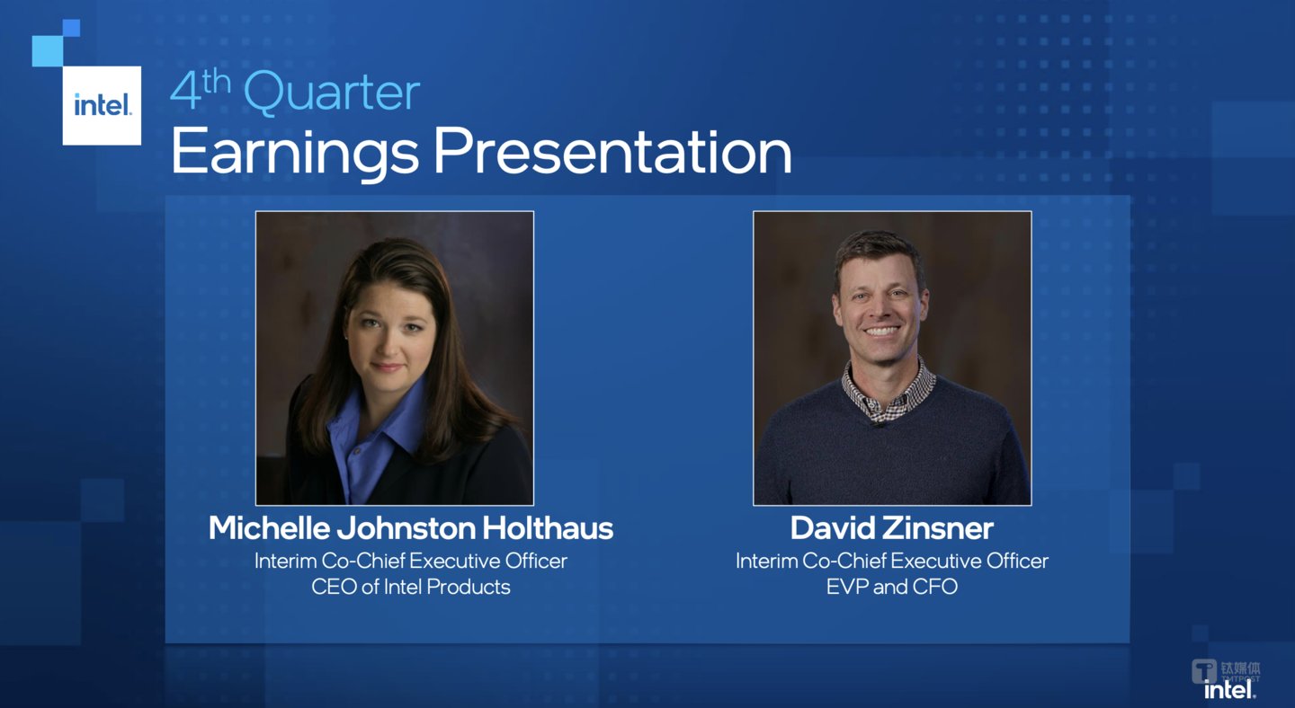 英特尔临时联席CEO米歇尔表示,第四季度取得积极进展,公司收入、毛利率和每股收益均高于预期。接下来,英特尔重新将重点放在加强和简化产品组合上,并继续推进流程路线图,这使英特尔能够更好地满足客户的需求。“David和我正在采取行动来增强我们的竞争地位并创造股东价值。”