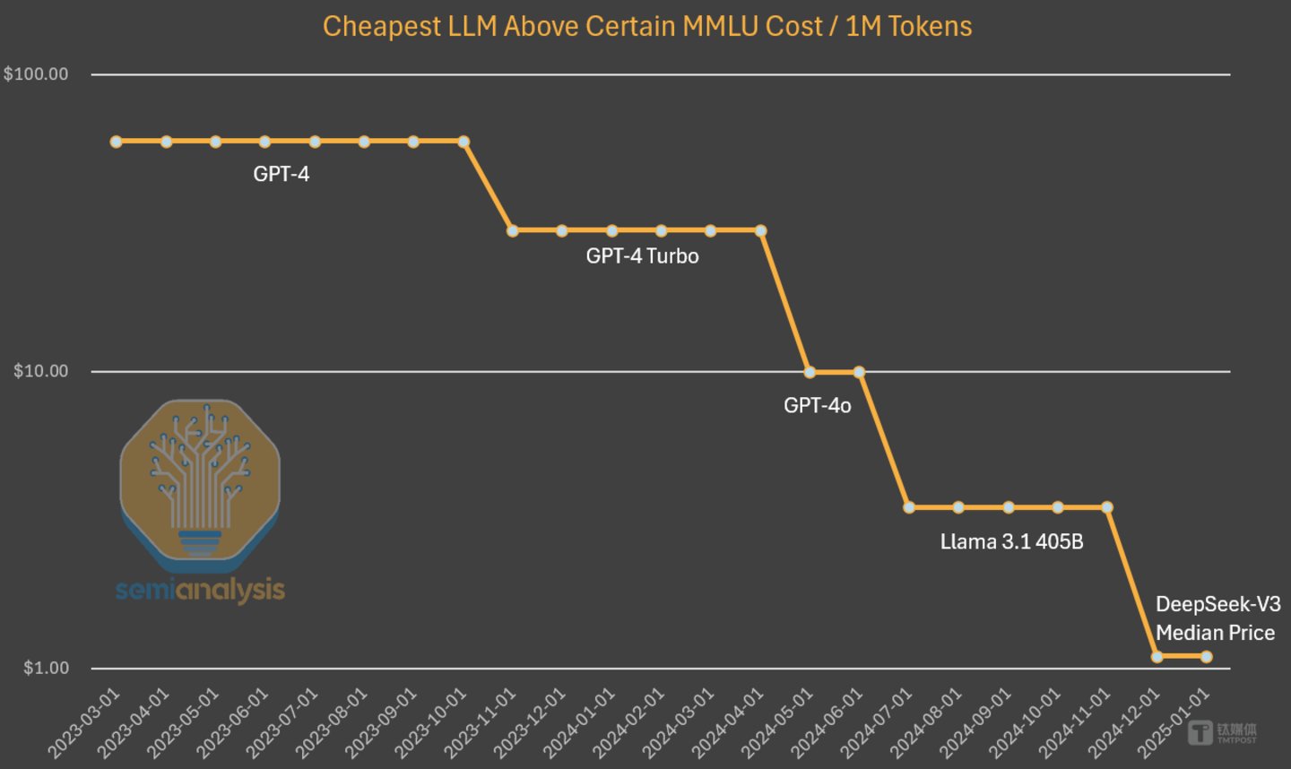 整体来说,正如SemiAnalysis所讲,到目前为止,这种“降本增效”模式的结果是,每年算法的进步速度快4倍,这意味着每过一年,实现相同功能所需的计算量就会减少4倍。整体来说,成本随时间变化,算法的改进和优化使成本降低了10倍,而能力提高了数倍。
