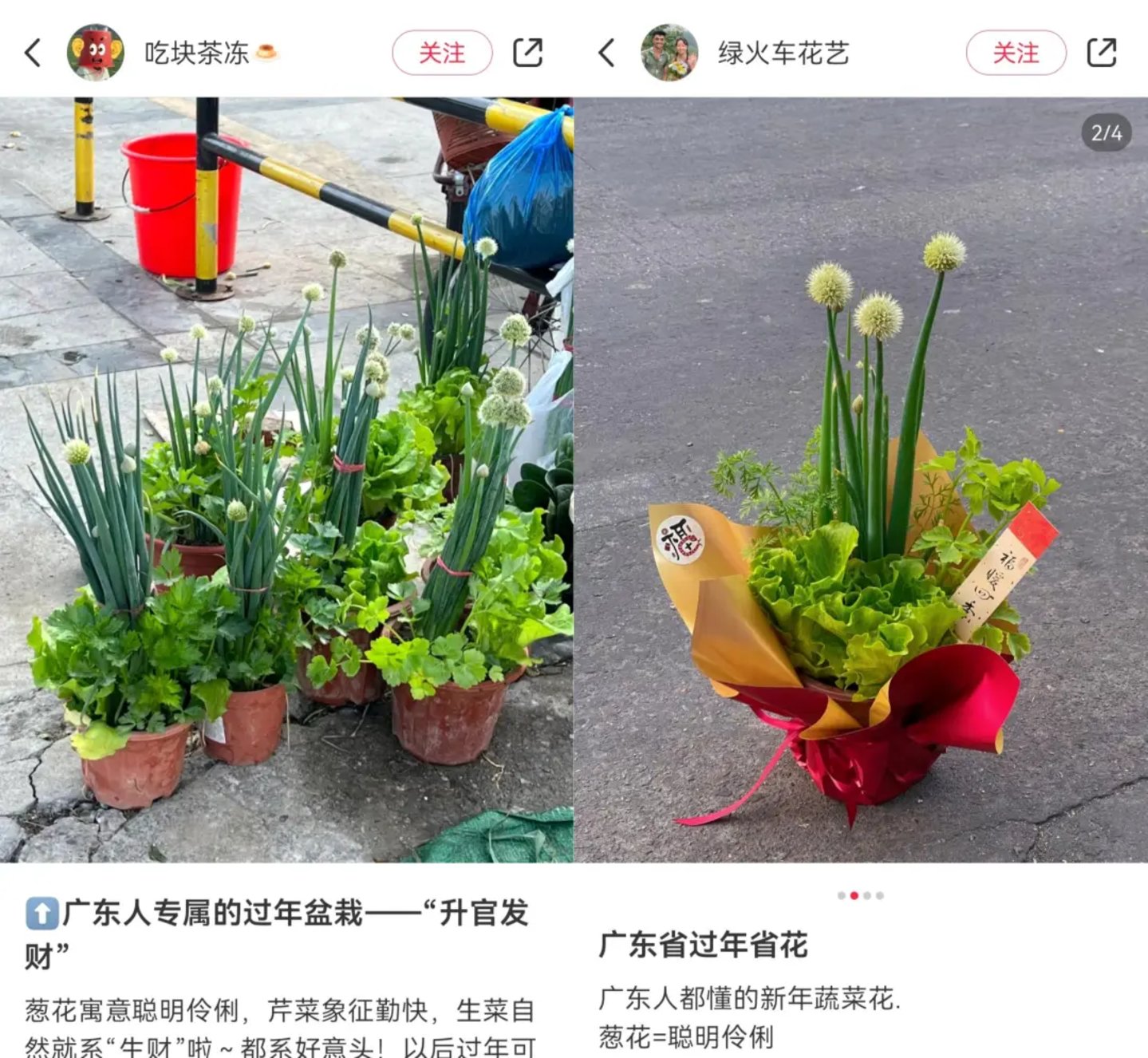 果果表示,广东过年有一种独特的“省花”,一盆里有生菜、芹菜、蒜苗、葱等蔬菜,寓意着生财、勤恳、精打细算和聪明,售价在10—15元左右,是对新年的美好祝愿。红皮萝卜盆栽在全国范围内火了起来,其实也是因为有着不错的寓意,大多数人为了讨一个好彩头。