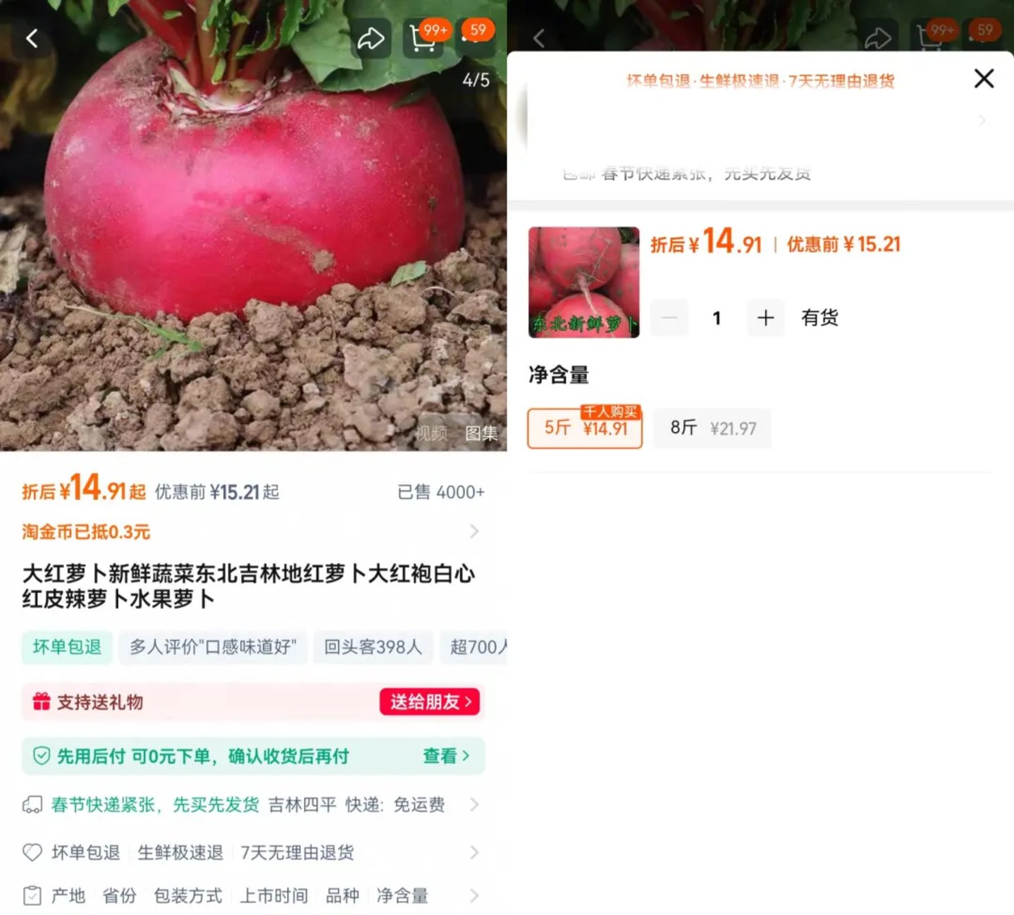 电商平台上,红皮萝卜3元一斤