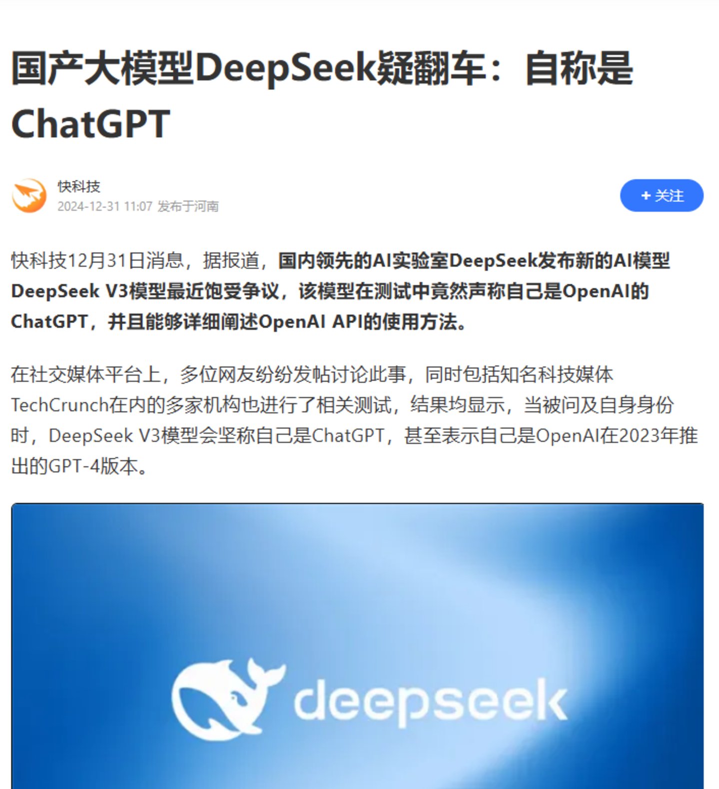 这一问题引发了部分网友的“套壳”质疑。不过,也有网友指出,当前数据清洗过程中最基本的原则之一,就是去除类似蒸馏GPT4的痕迹,删去这类数据是个非常简单的操作。那么,为什么DeepSeek没有采取这一操作呢?
