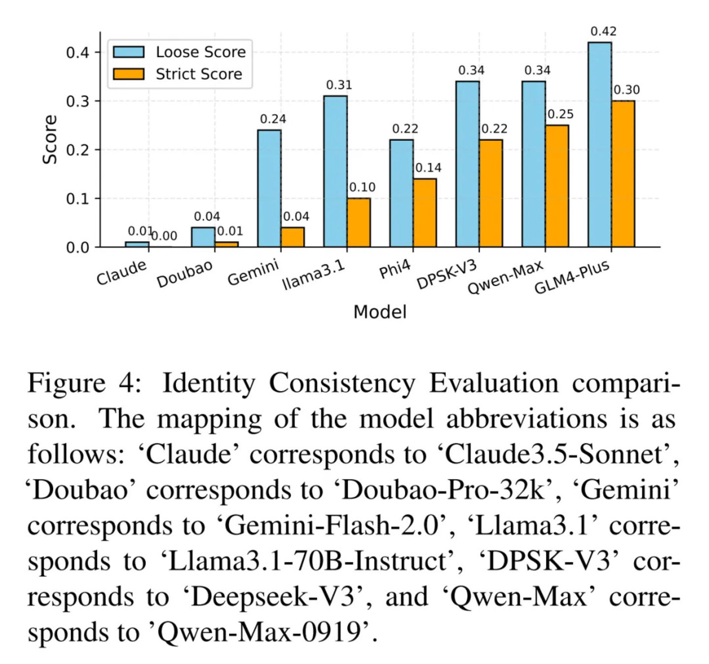 该论文提出了一个系统化的框架,量化并评估大模型蒸馏的过程及其影响,采用了“响应相似性评估(RSE)”和“身份一致性评估(ICE)”两个量化指标。RSE实验结果显示,DeepSeek V3的蒸馏程度与GPT4o接近,评分为4.102,远高于其他模型(如Llama 3.1-70B和Doubao-Pro-32k)。在ICE实验中,DeepSeek V3也显示出较高的蒸馏程度,属于可疑响应数量最多的模型之一。