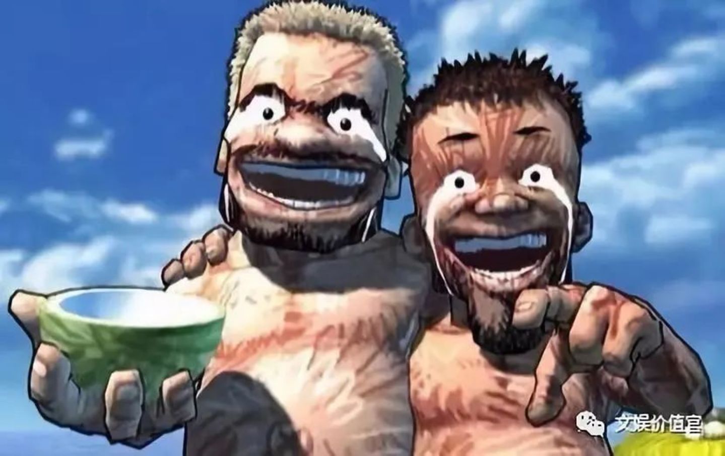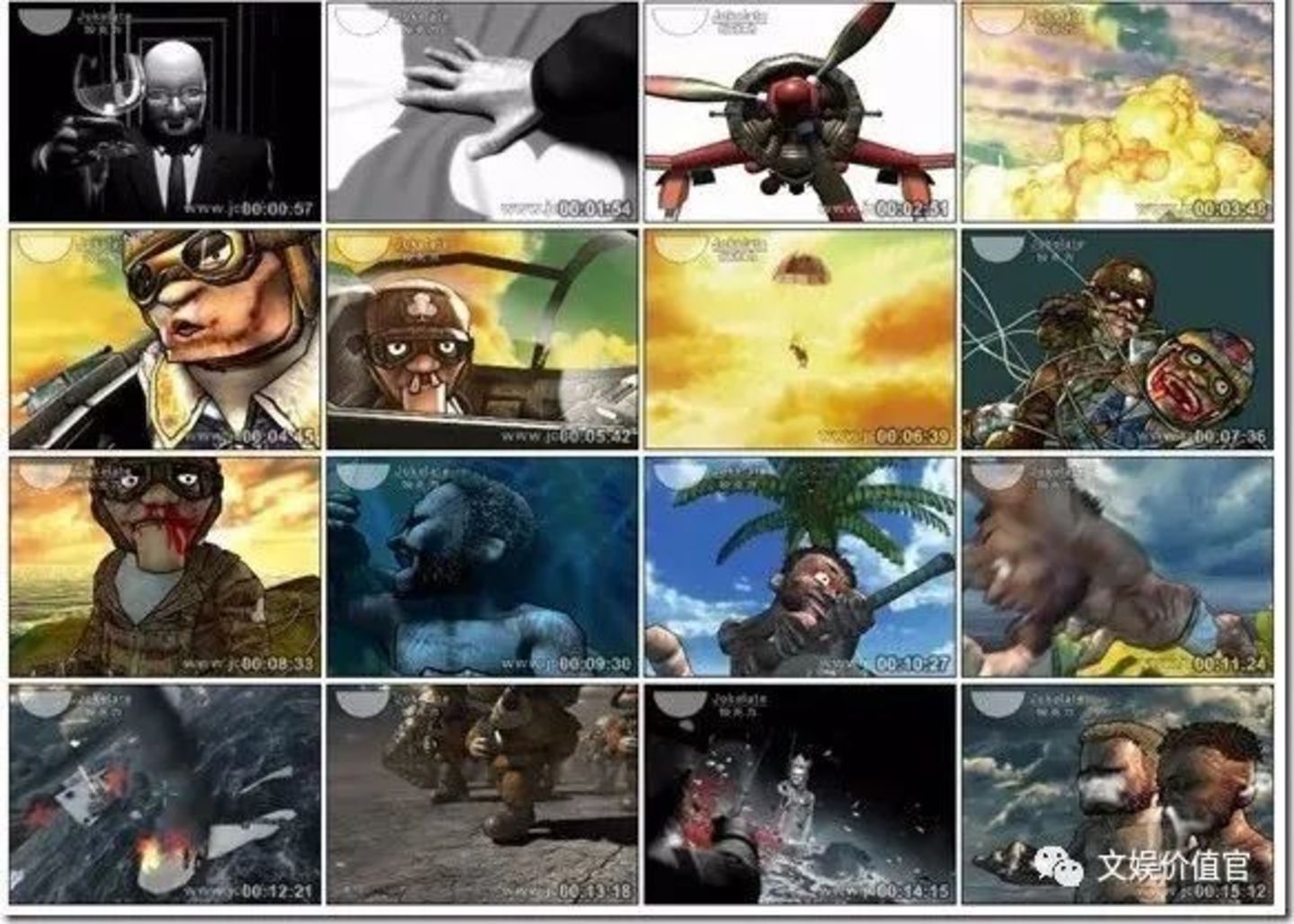 没有一句台词的动画短片《打,打个大西瓜》,时长16分钟,讲述的是:战争中敌对的两名飞行员在空中展开激战,飞机坠毁后一同流落荒岛,从互相残杀到相濡以沫。救援船队到来后,他们放弃登船,选择了在孤岛与世无争的生活。