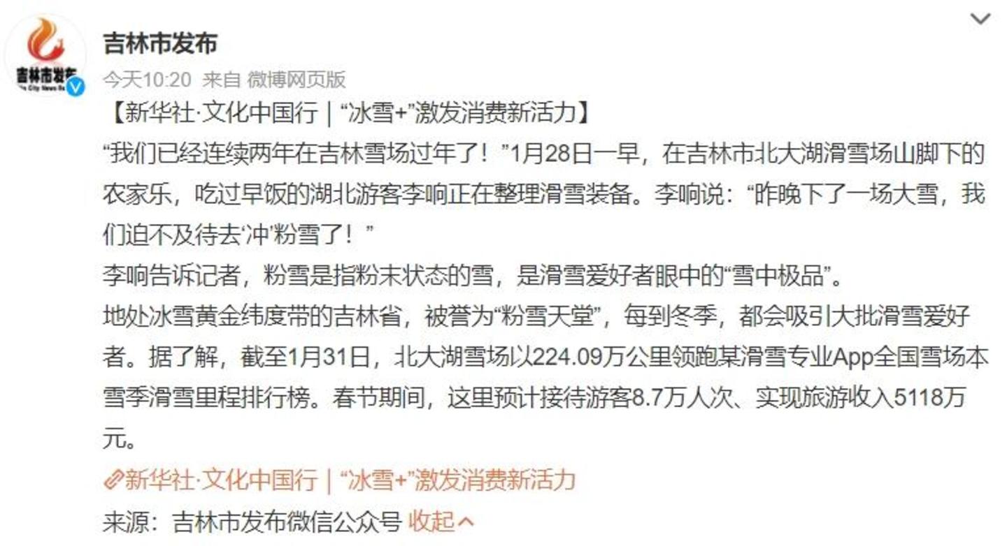 雪场附近,还不乏雪屋火锅、围炉煮酒、冰钓、雪地摩托等特色项目;消费者们把目光从单一的滑雪游转变到滑雪、美食、新奇特门店“一条龙”体验。