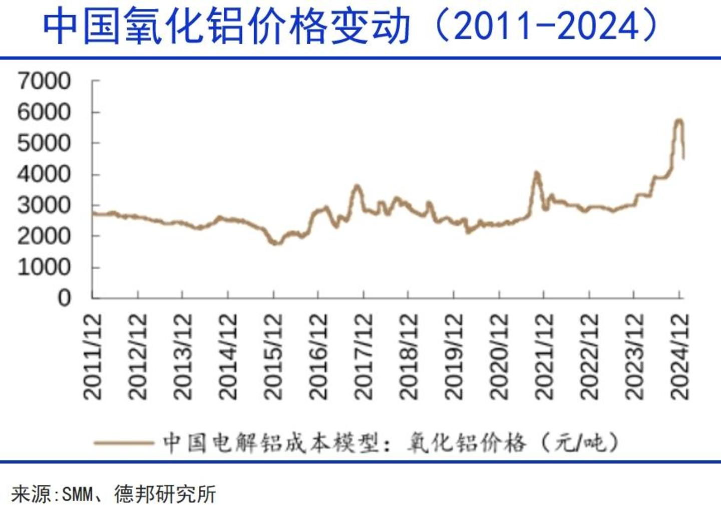 多种因素叠加,引发供需矛盾继续升级,推动2024年氧化铝价格飙升近90%,到年底冲击到5698元/吨,再创历史新高。