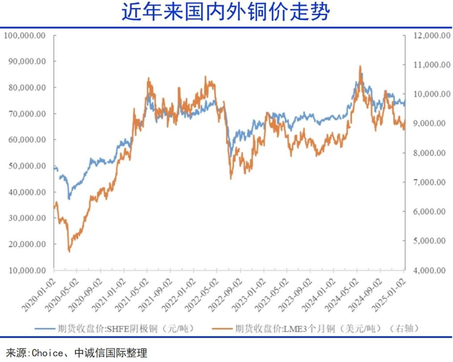 另一大宗商品铜的行情也是居高不下。国际铜价在2024年依然维持高位徘徊,LME期铜价格一度在当年5月创出11104.5美元/吨的历史新高。