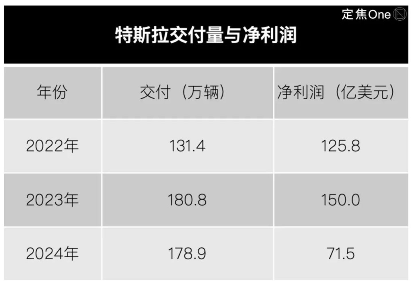 作为全球纯电车龙头,特斯拉2024年比2022年多卖了48万辆车,净利润不到当时的六成。