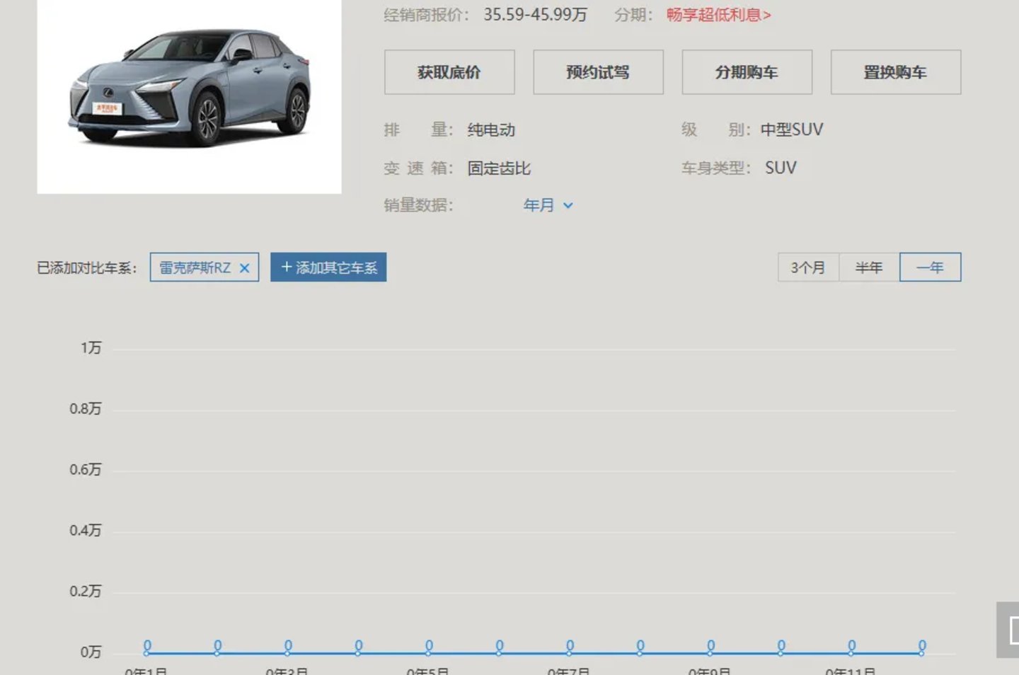 在冉冉升起的希望背后,雷克萨斯当下在中国的电动车销售,成绩可以说是非常惨淡。